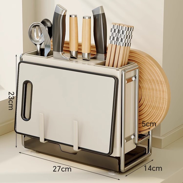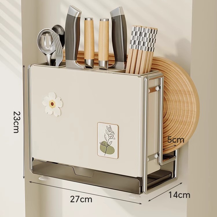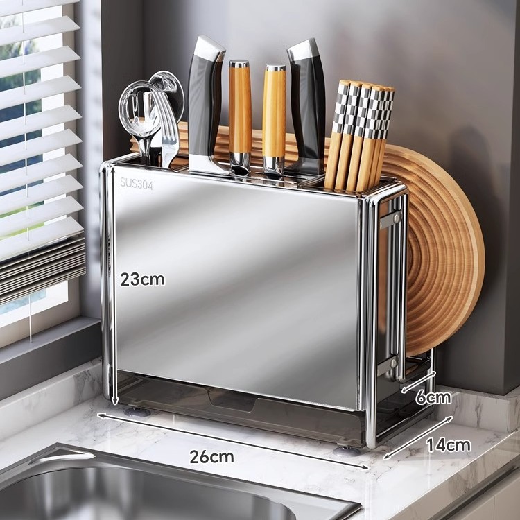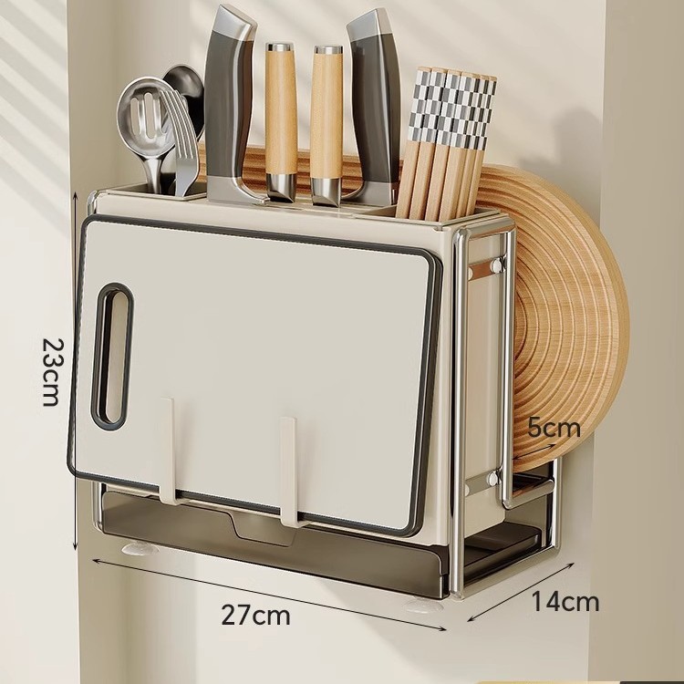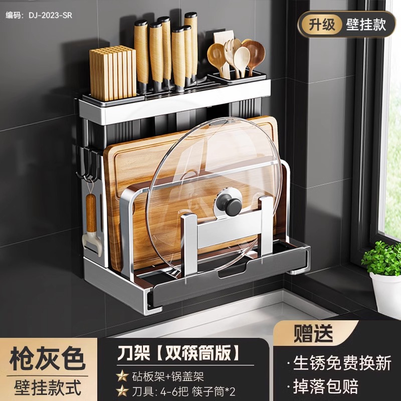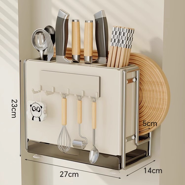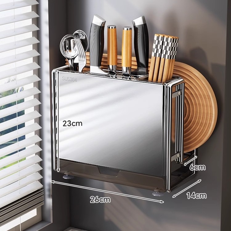 • [304 스테인레스 스틸] 칼 홀더 + 도마 스탠드 조리대/벽걸이 겸용