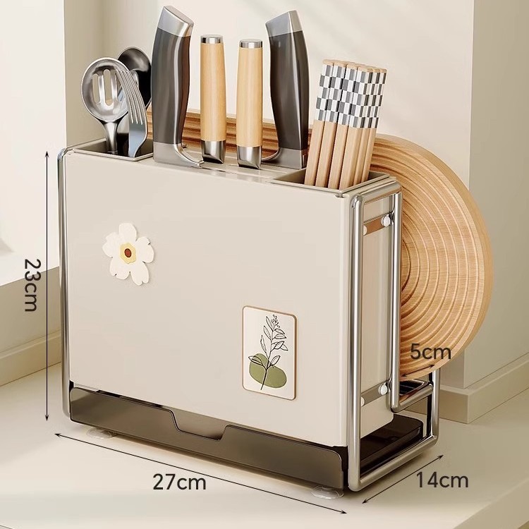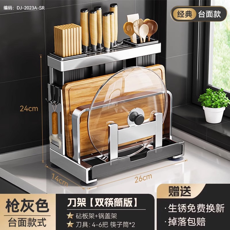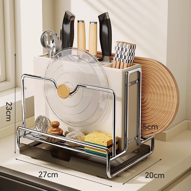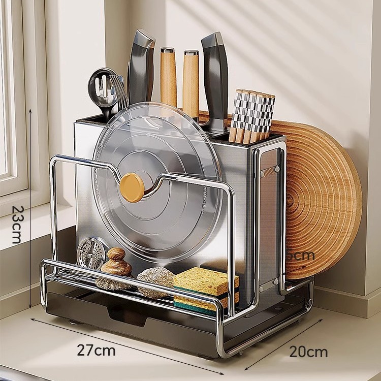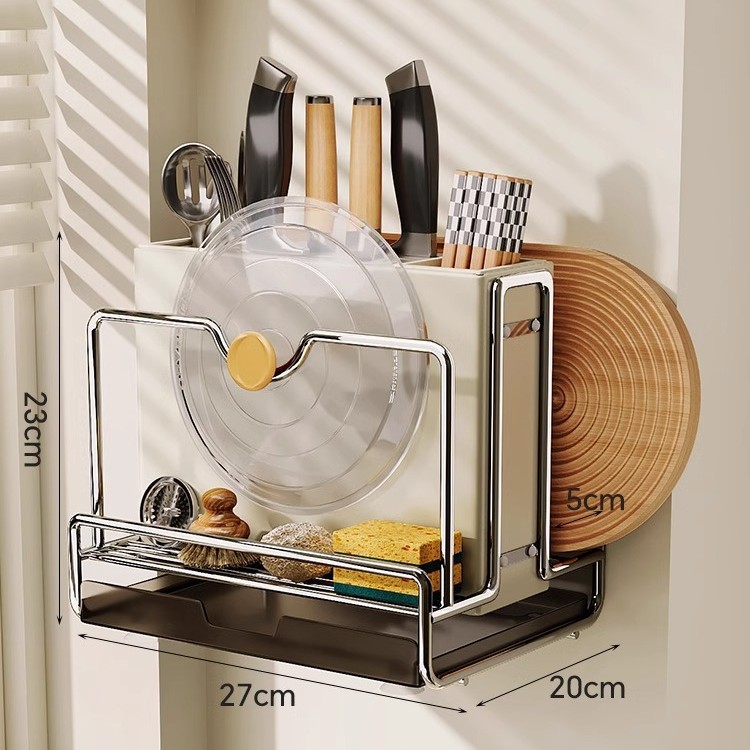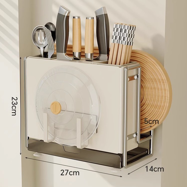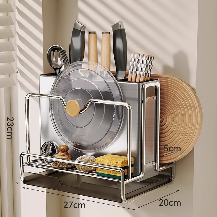 • [304 스테인레스 스틸] 칼 홀더 + 도마 스탠드 조리대/벽걸이 겸용
