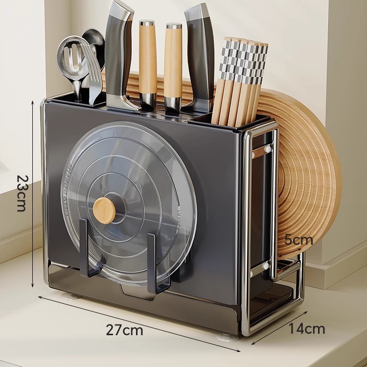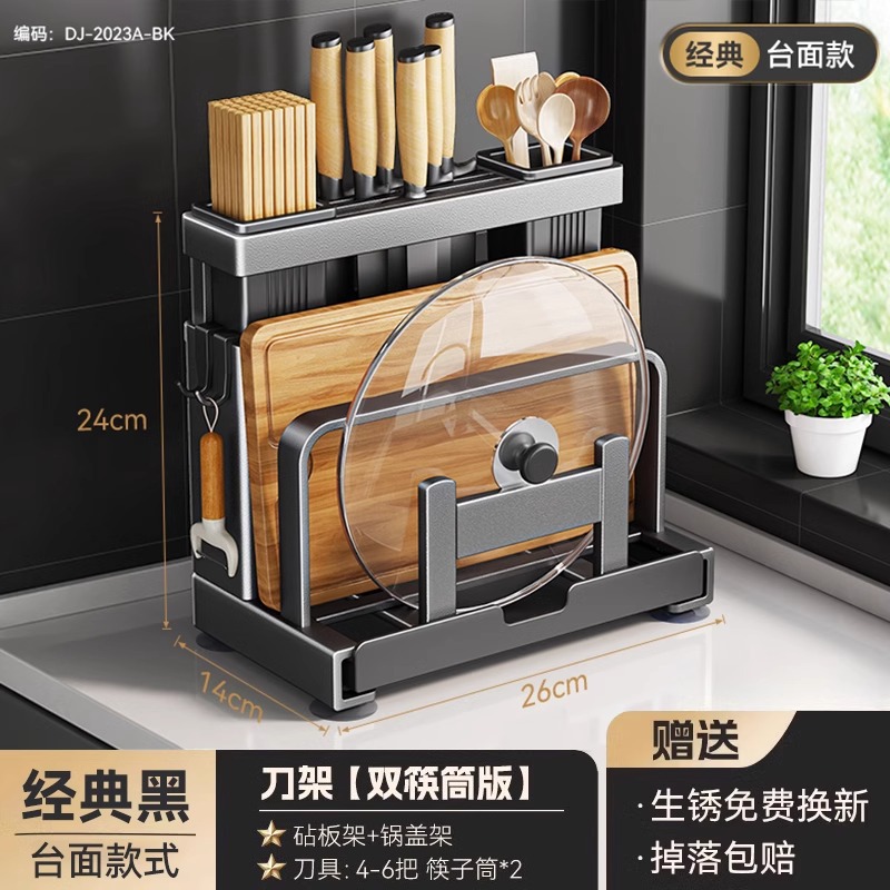 • 업그레이드된 두꺼운 클래식 블랙 [이중 젓가락통 조리대 모델] 도마걸이 + 냄비뚜껑걸이 + 고리*4