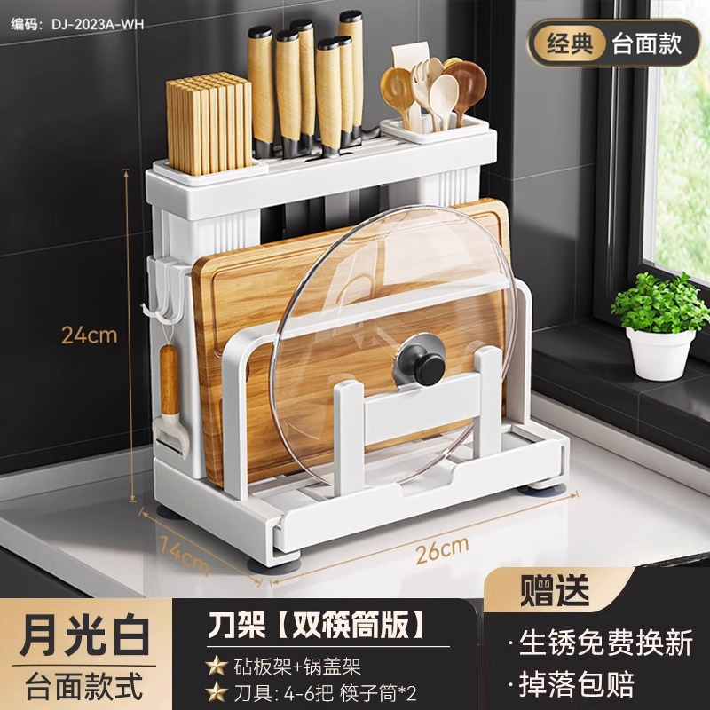 • 업그레이드된 두꺼운 달빛백색 [이중젓가락통 조리대모델] 도마걸이 + 냄비뚜껑걸이 + 고리*4