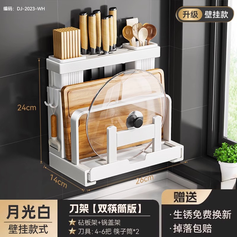 • 업그레이드된 두꺼운 달빛백색 [이중젓가락통 벽걸이형] 도마걸이 + 냄비뚜껑걸이 + 고리*4