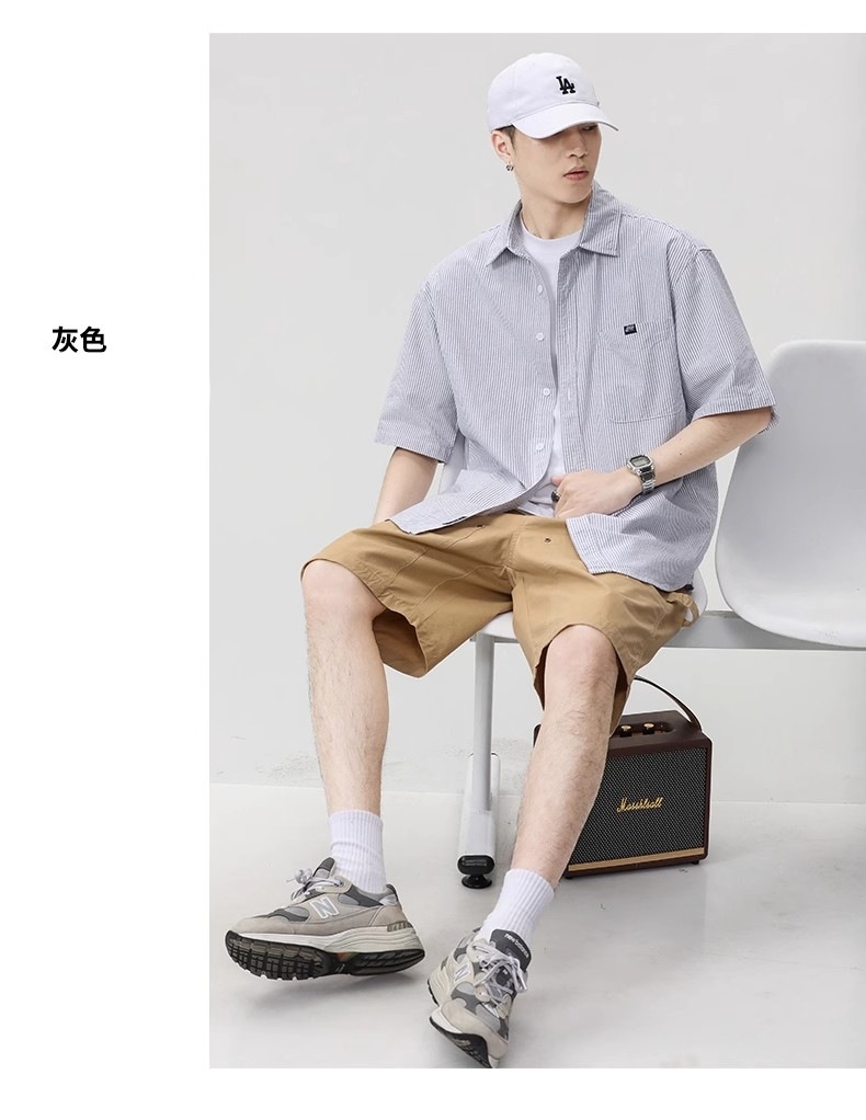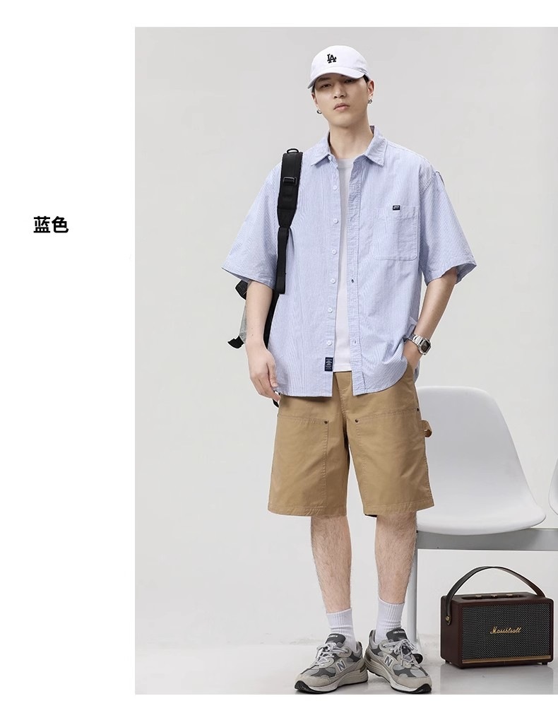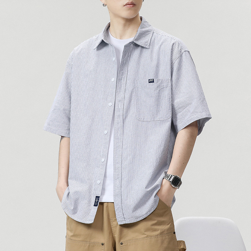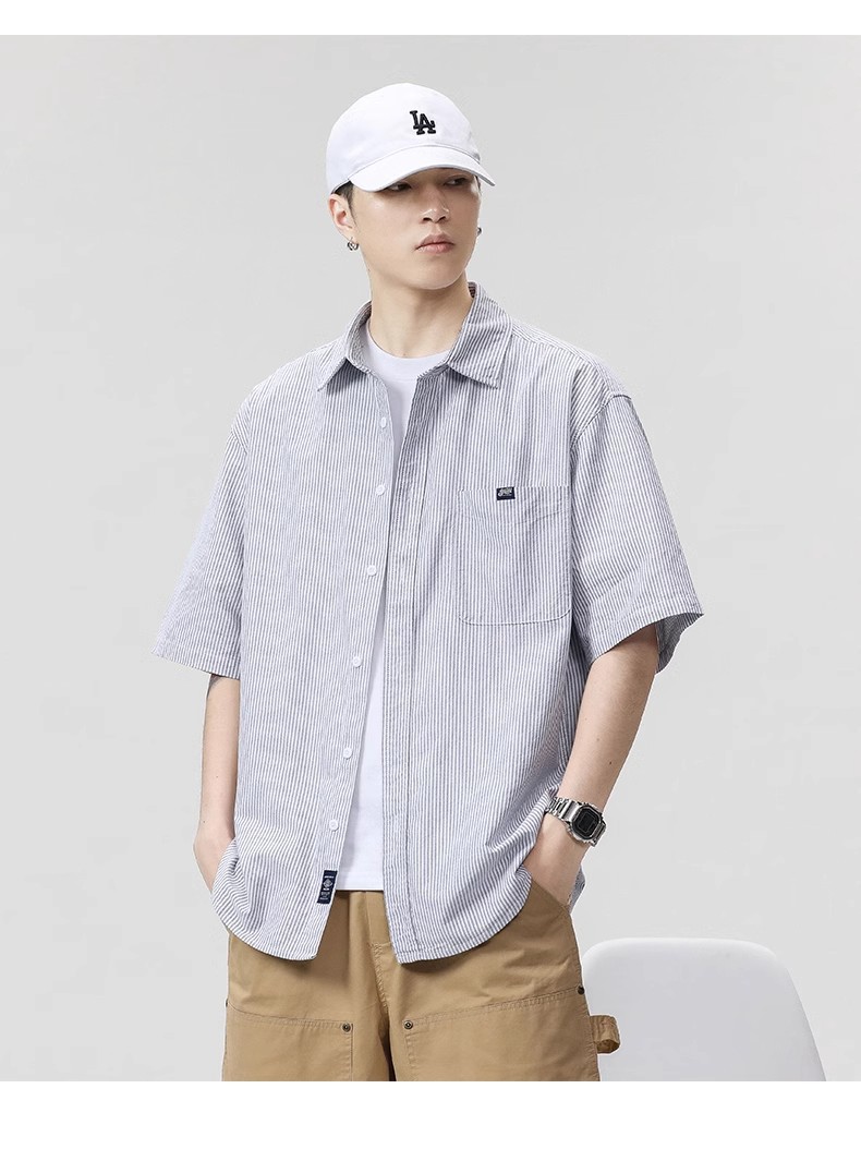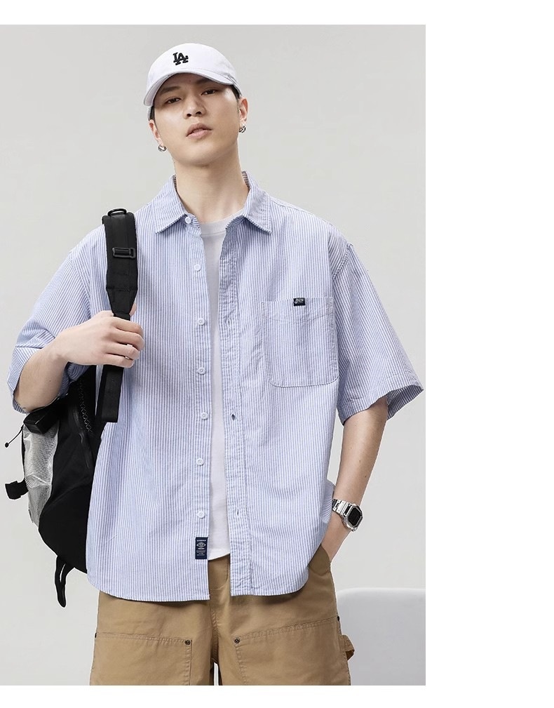 일본 스타일 패션 스트라이프 반팔 셔츠 남성 여름 시티보이 캐주얼 다용도 루즈핏 라지 사이즈 카라 셔츠스토어 가기