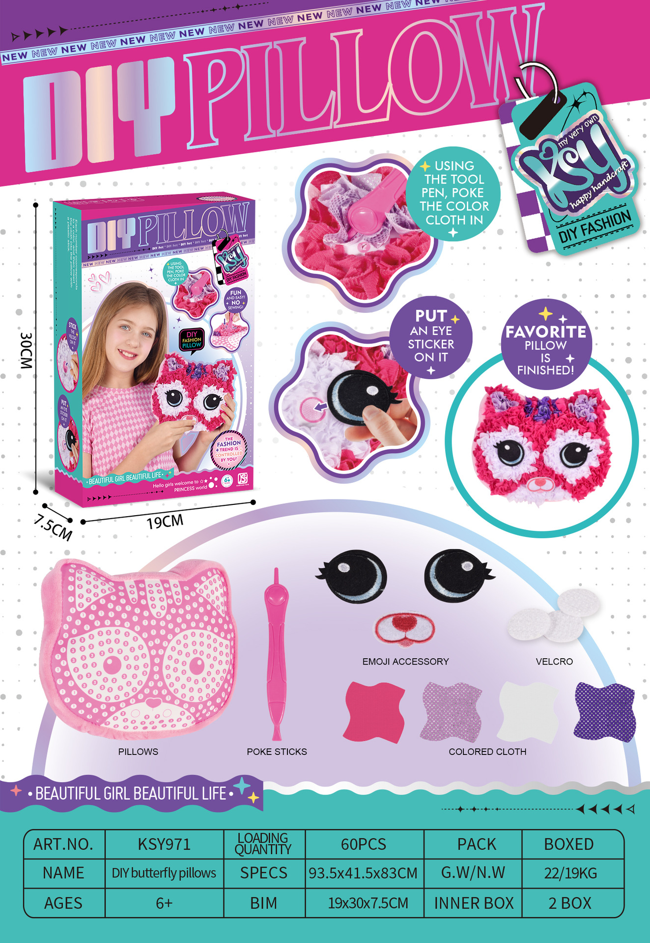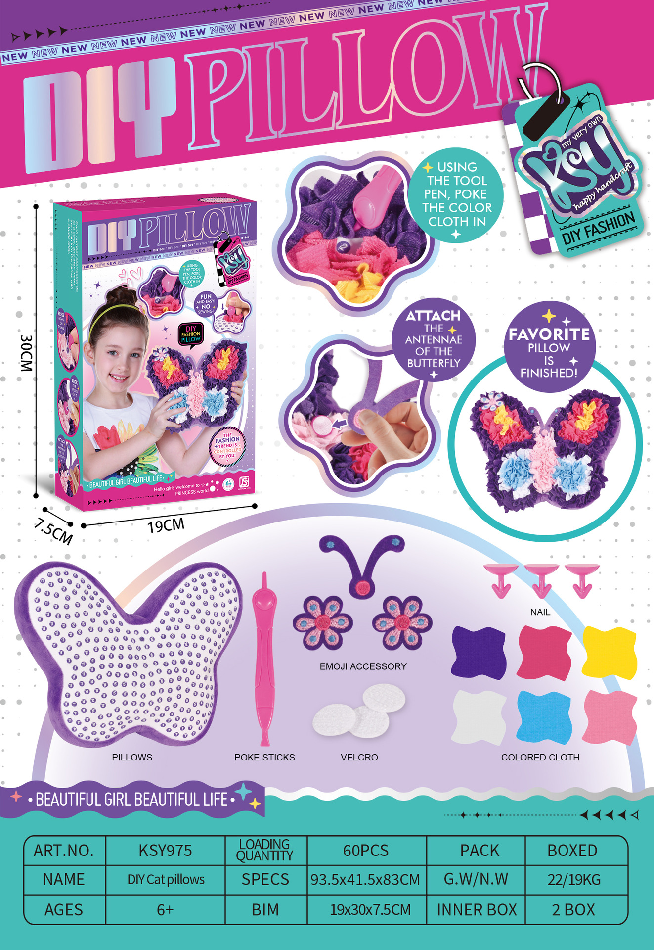 • KSY975 수제 패브릭 봉제 나비 베개