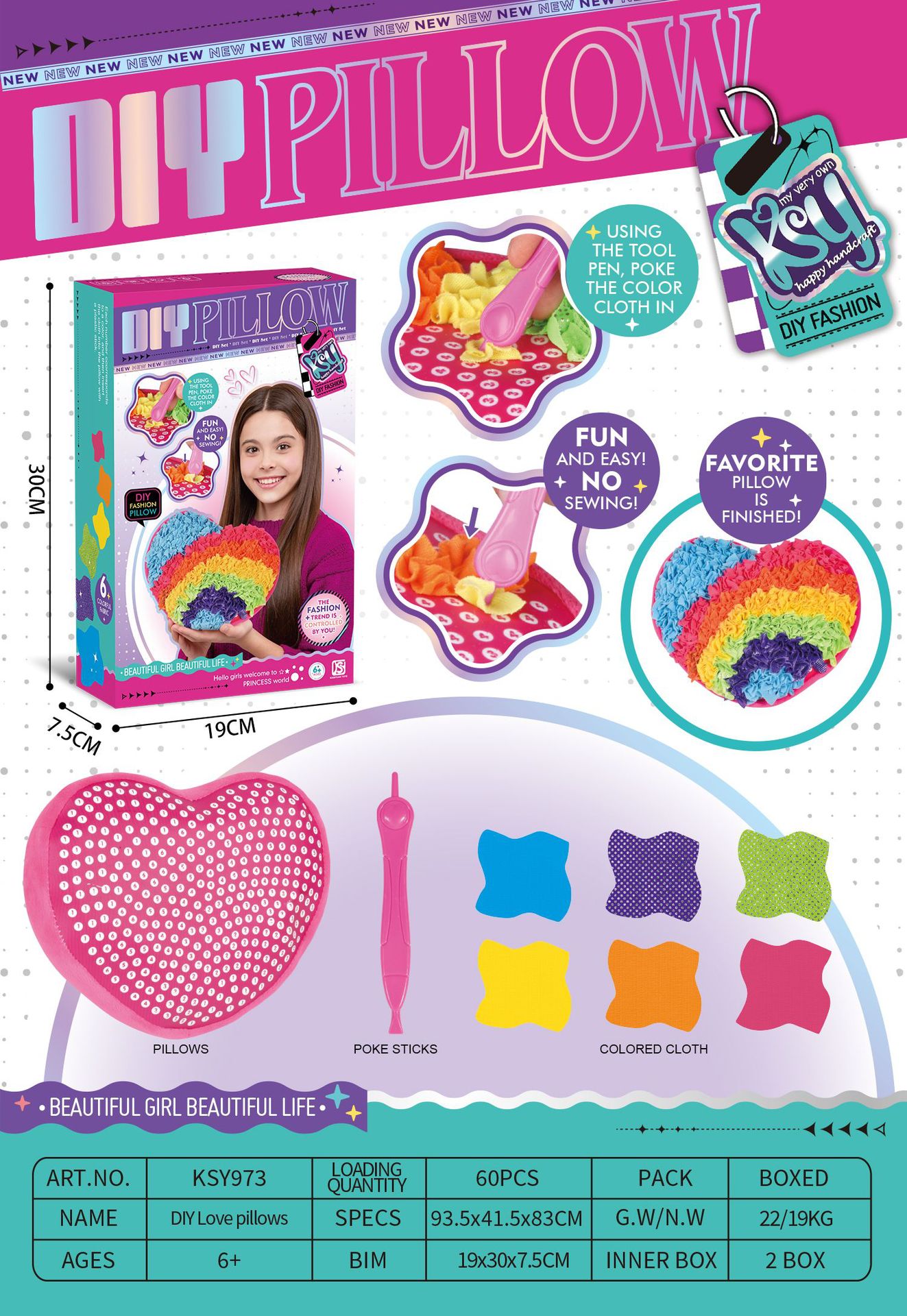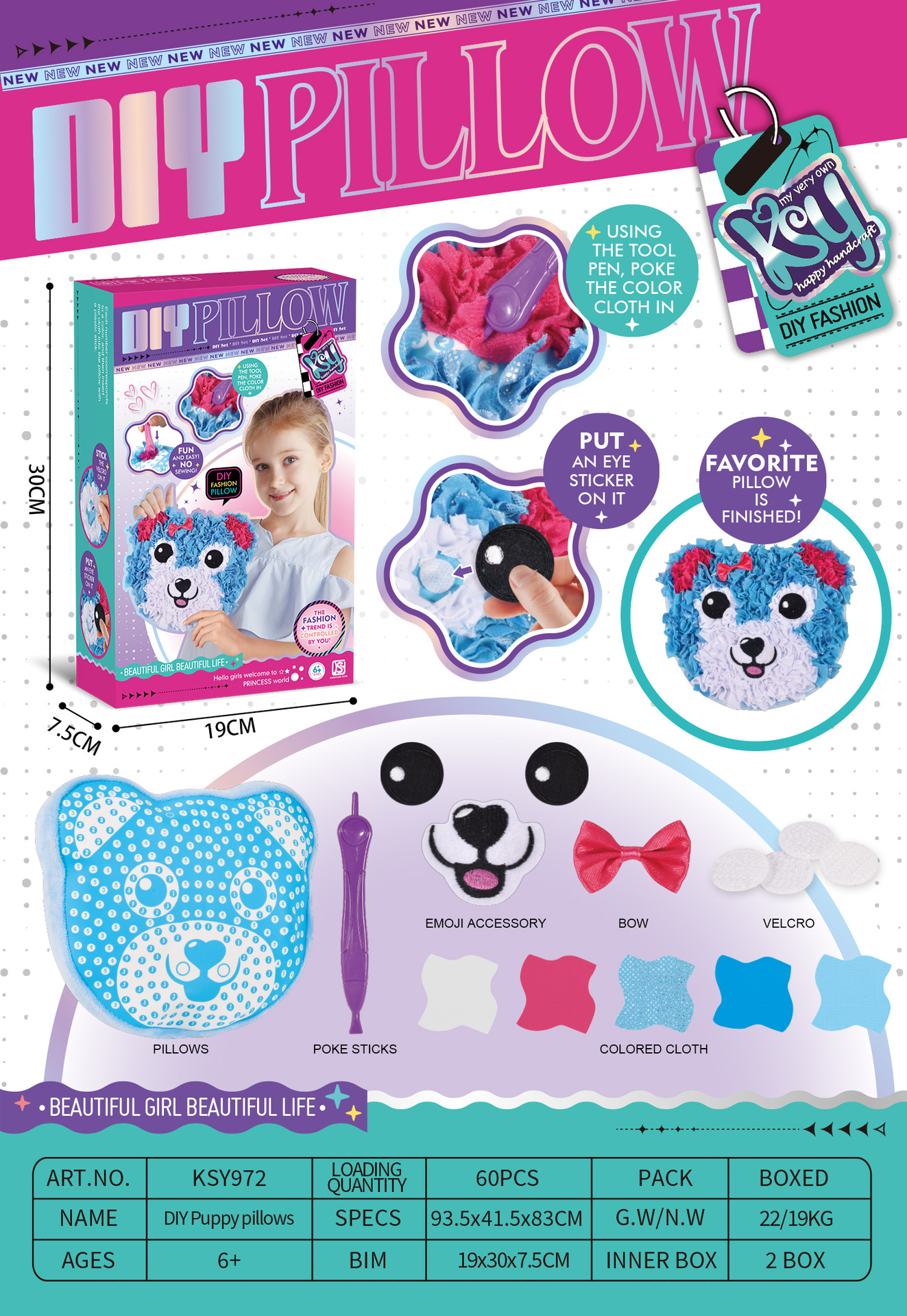 국경 간 포킹 베개 인형 봉제 3 차원 동물 인형 감압 어린이 수제 DIY 소재 가방 장난감 3