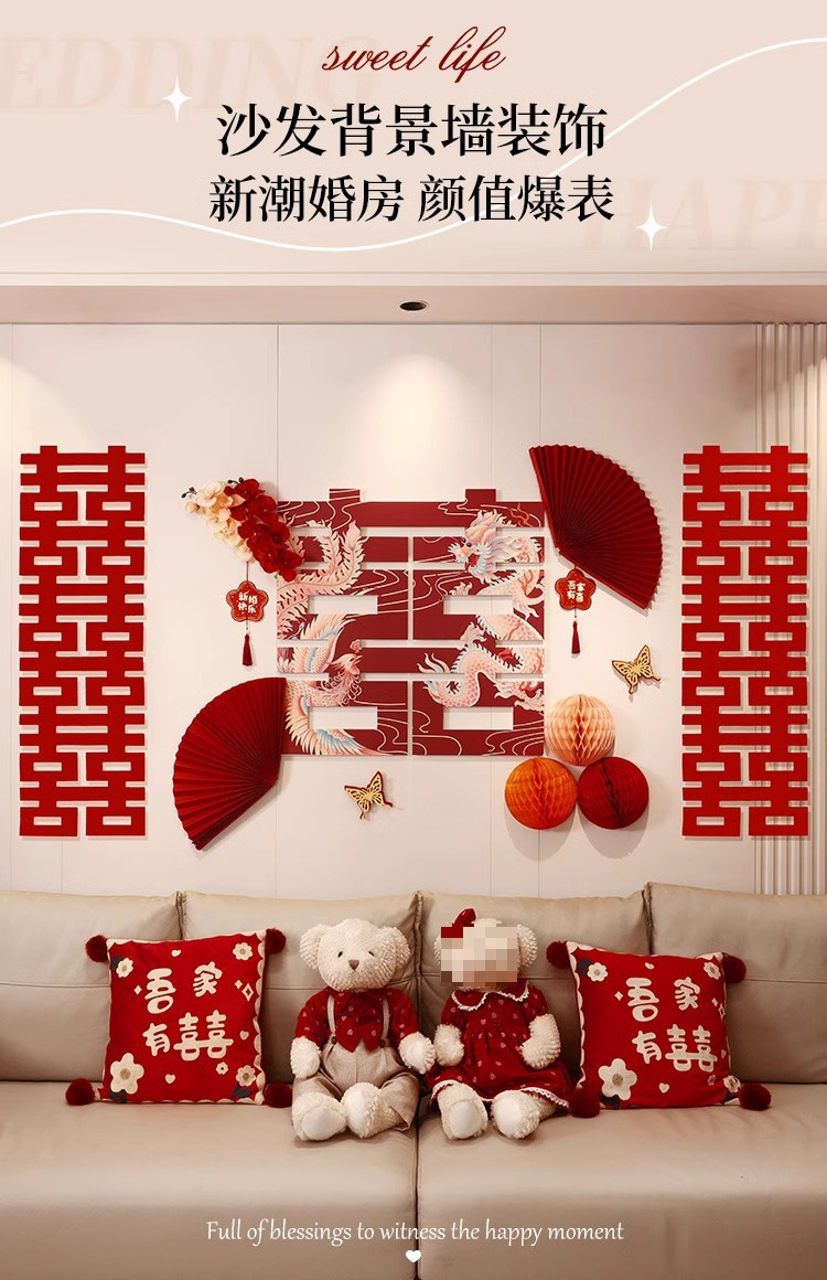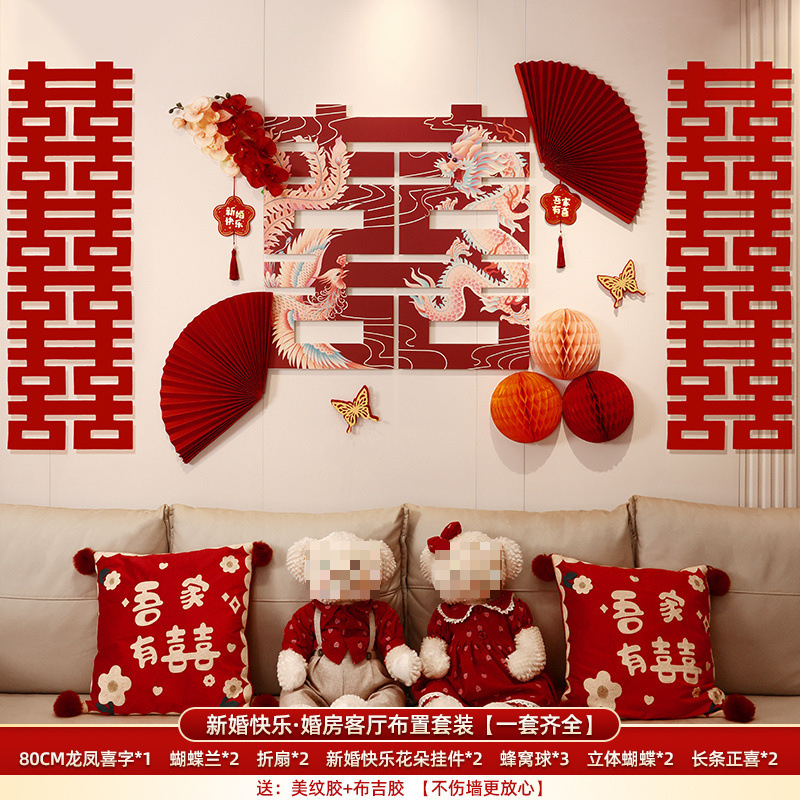 婚房布置套装结婚客厅新房装饰男方女方喜字背景墙婚庆用品大全