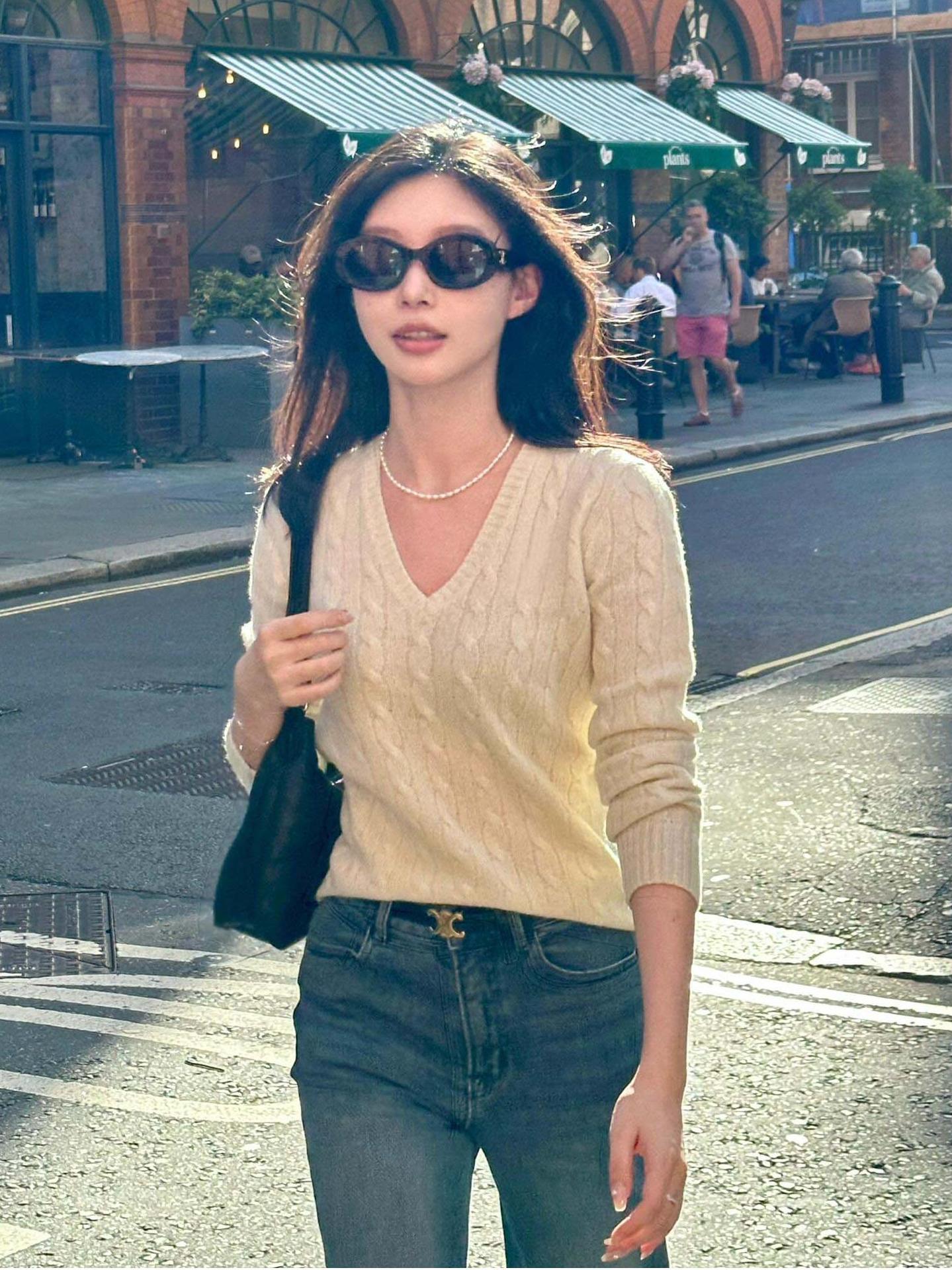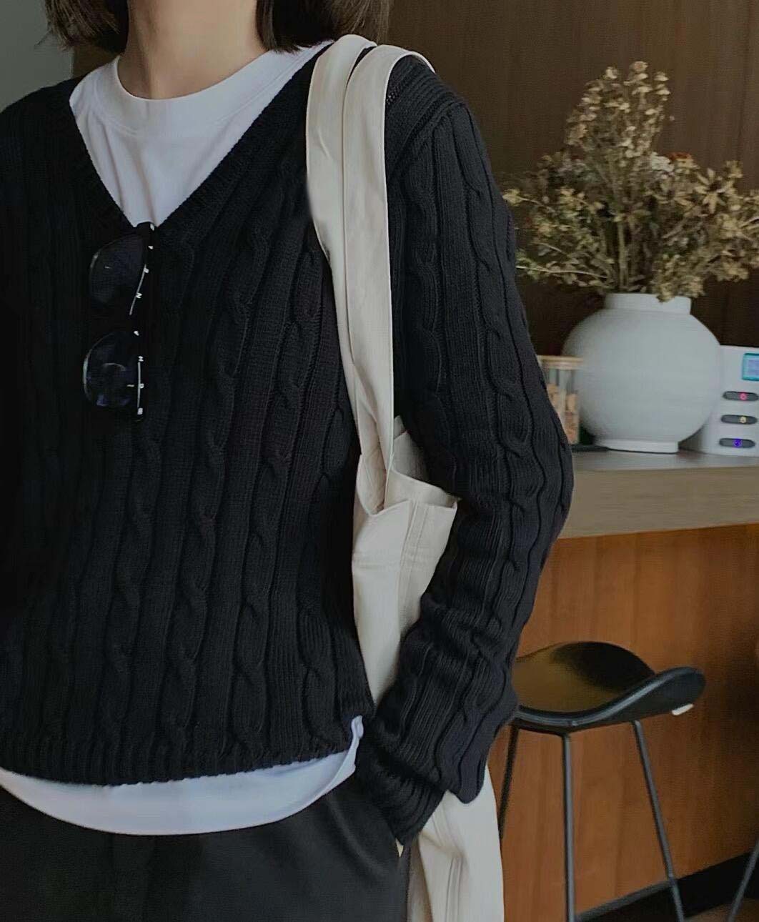 RL 러프 포니 V 넥 니트웨어 여성 니트웨어 남성 자수 스웨터 가을과 겨울 커플의 트위스트 탑