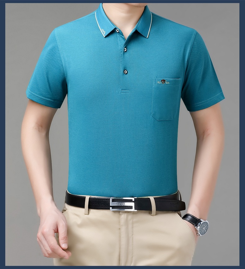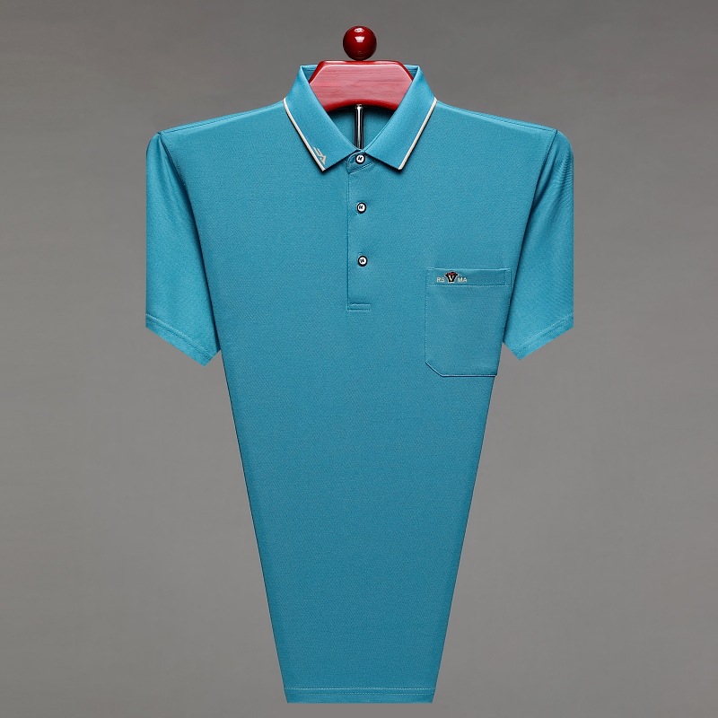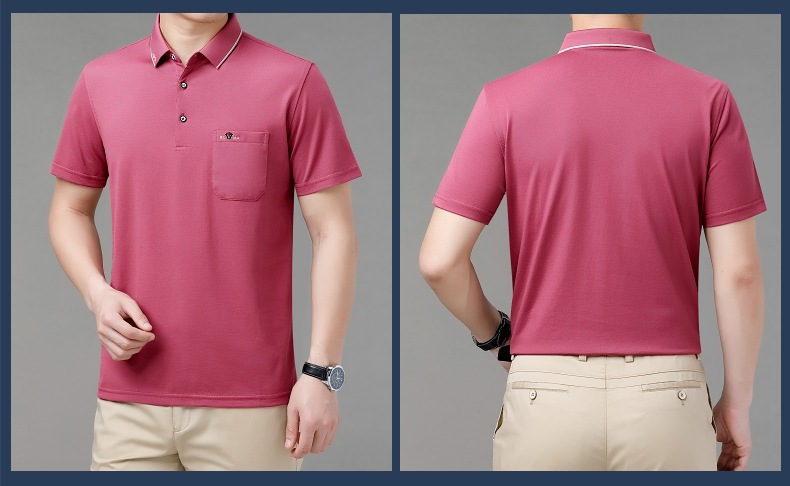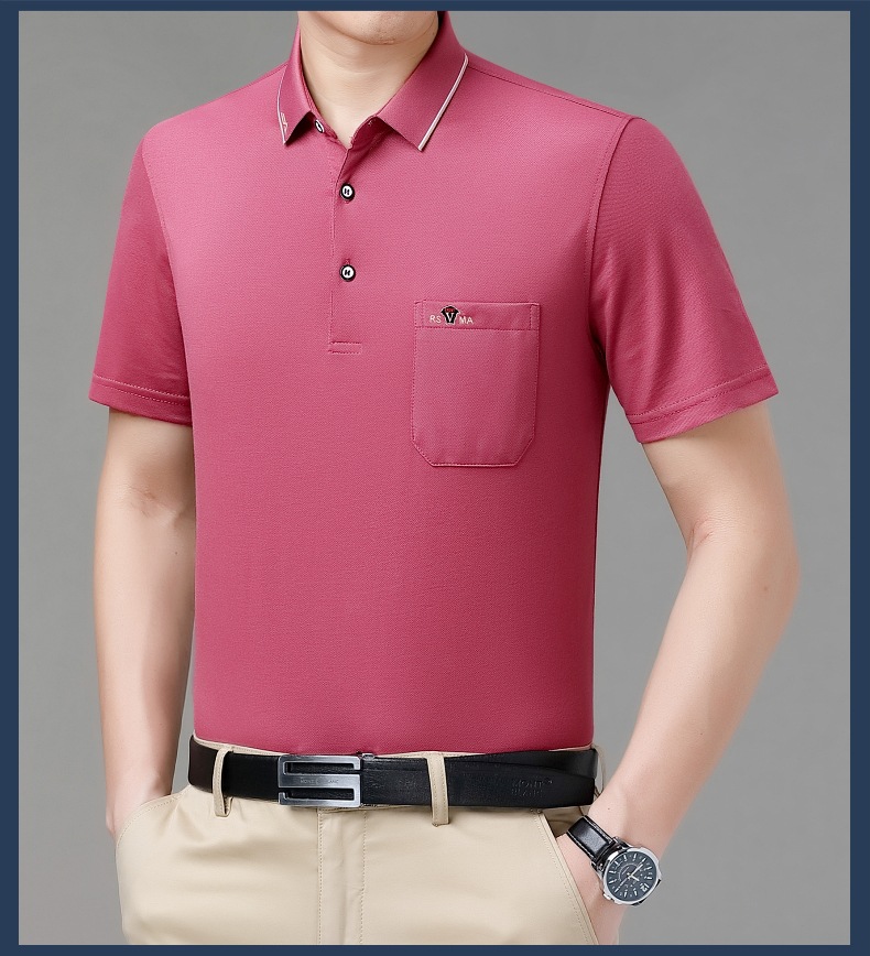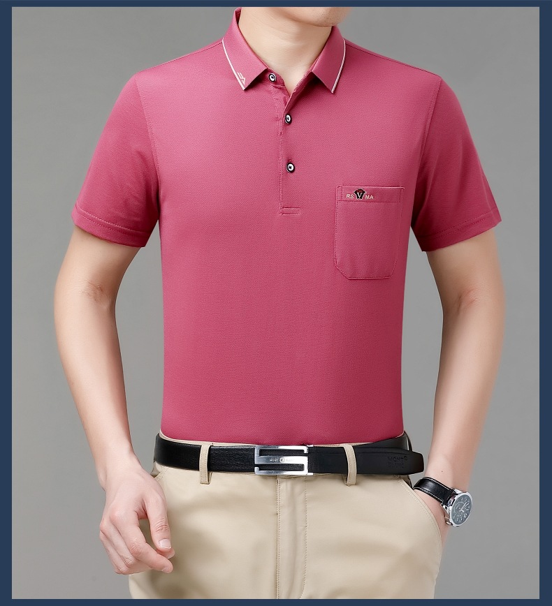도매 고급 뽕나무 실크 여름 새로운 남성 티셔츠 짧은 소매 최고 비즈니스 캐주얼 안티 주름 단색 POLO 셔츠