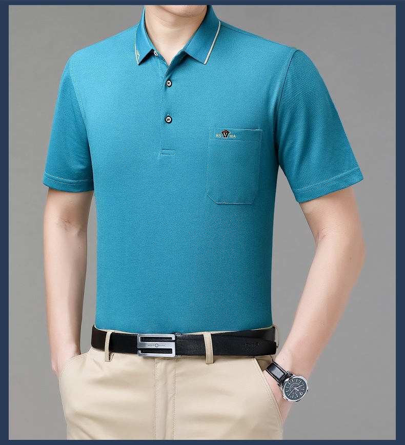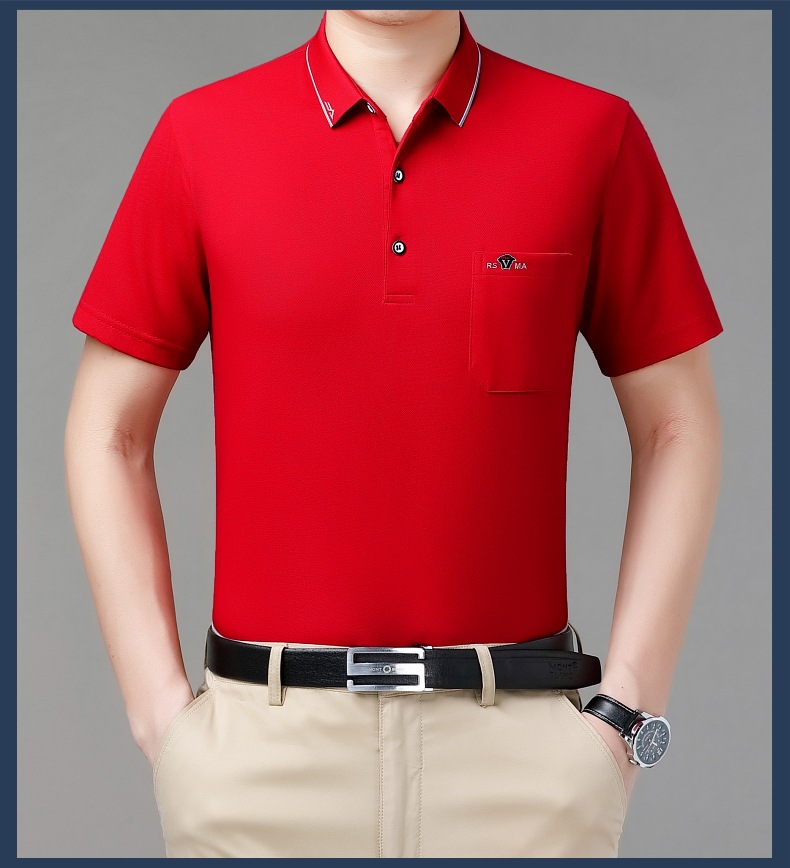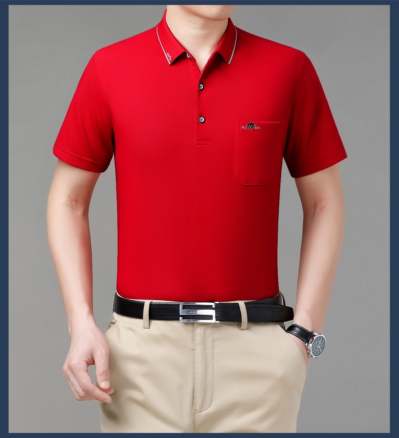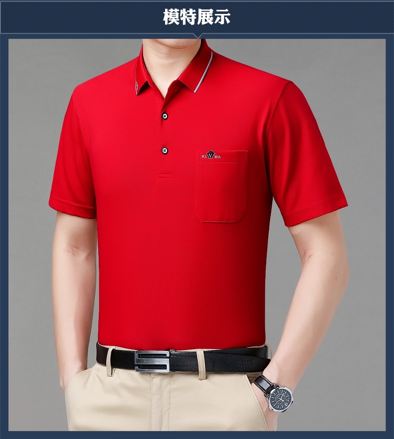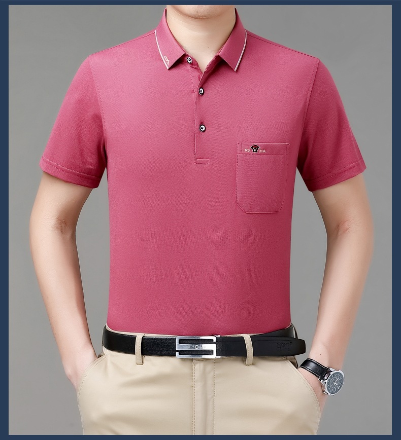 도매 고급 뽕나무 실크 여름 새로운 남성 티셔츠 짧은 소매 최고 비즈니스 캐주얼 안티 주름 단색 POLO 셔츠