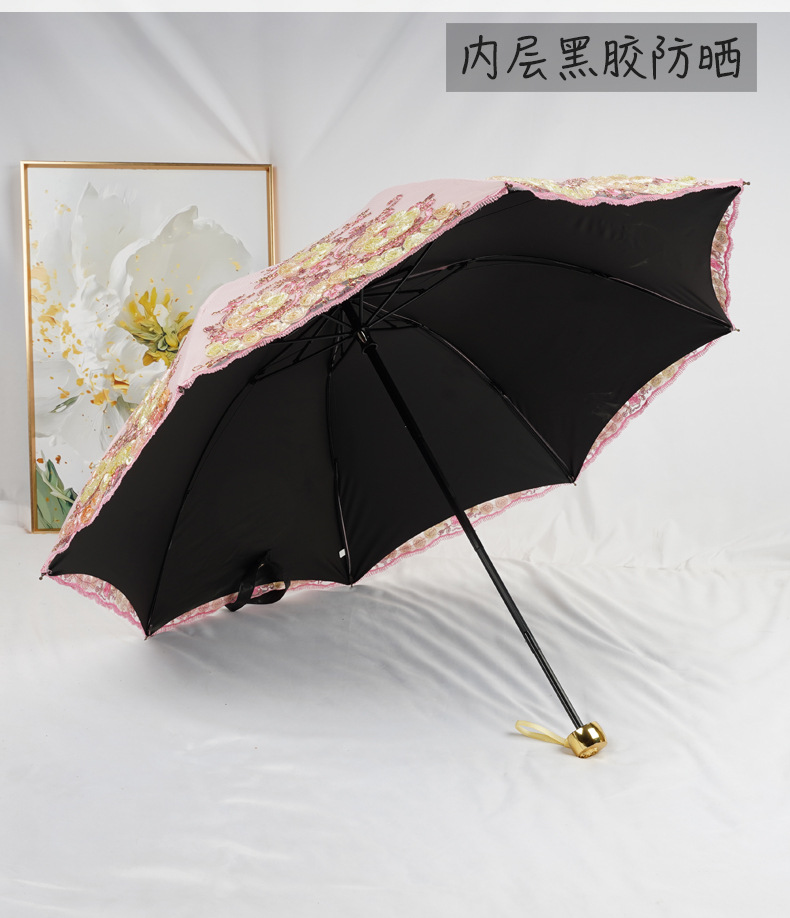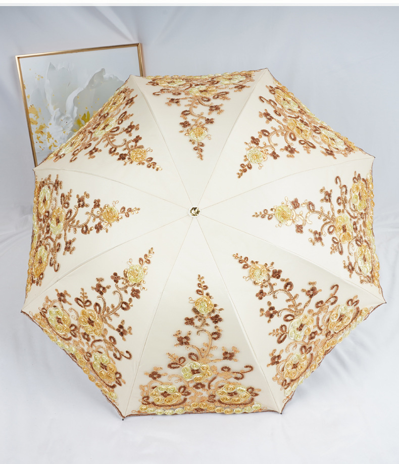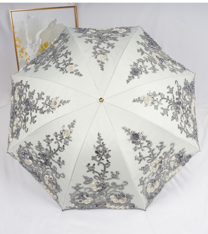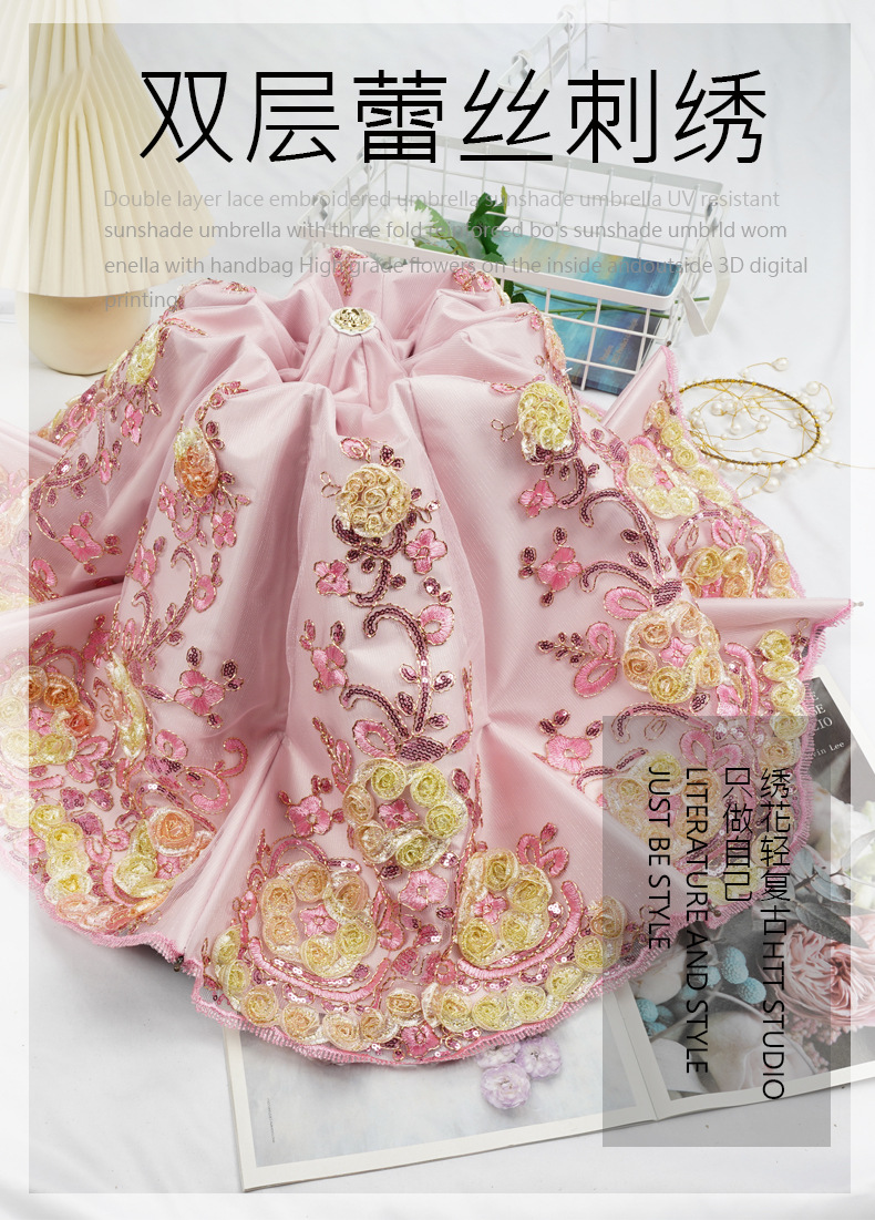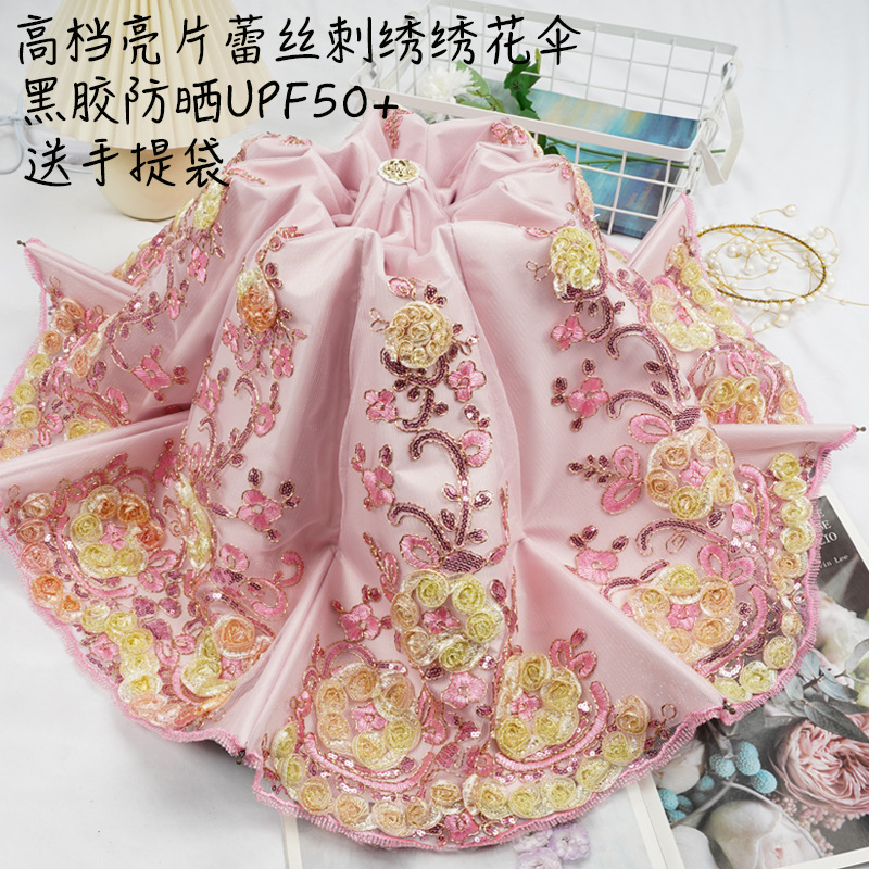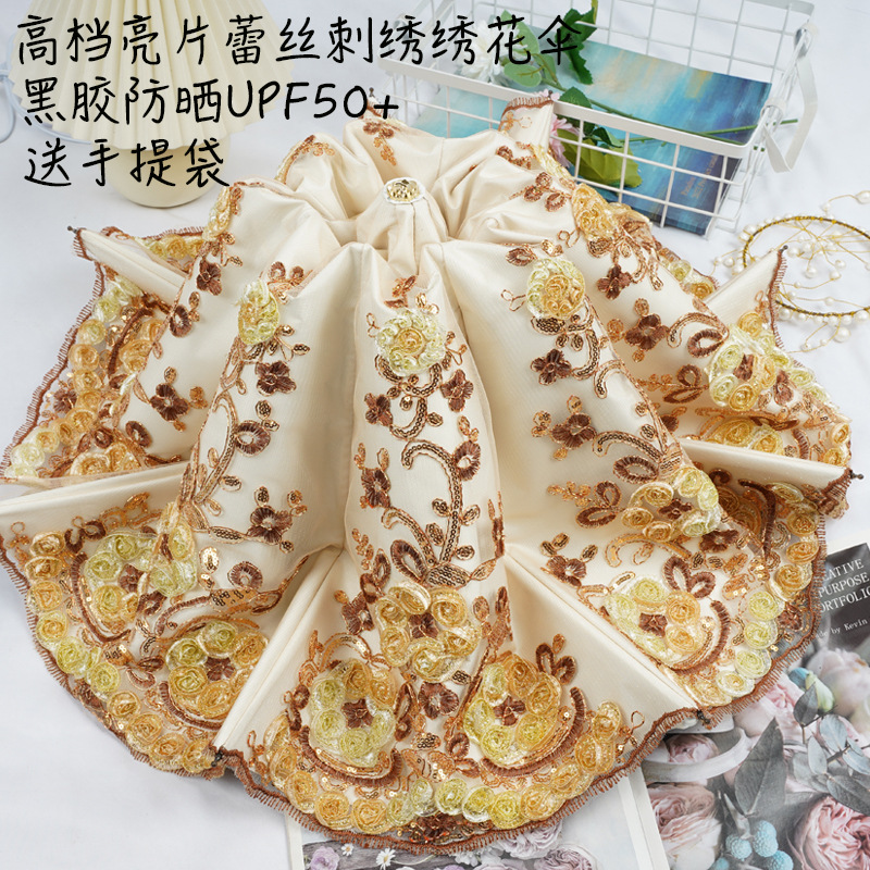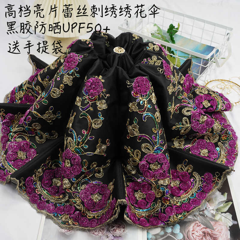 3 차원 수놓은 우산 여성 이중층 세골 레이스 수놓은 항자외선 3 배 태양 우산 이중목적 맑음 우산스토어 가기