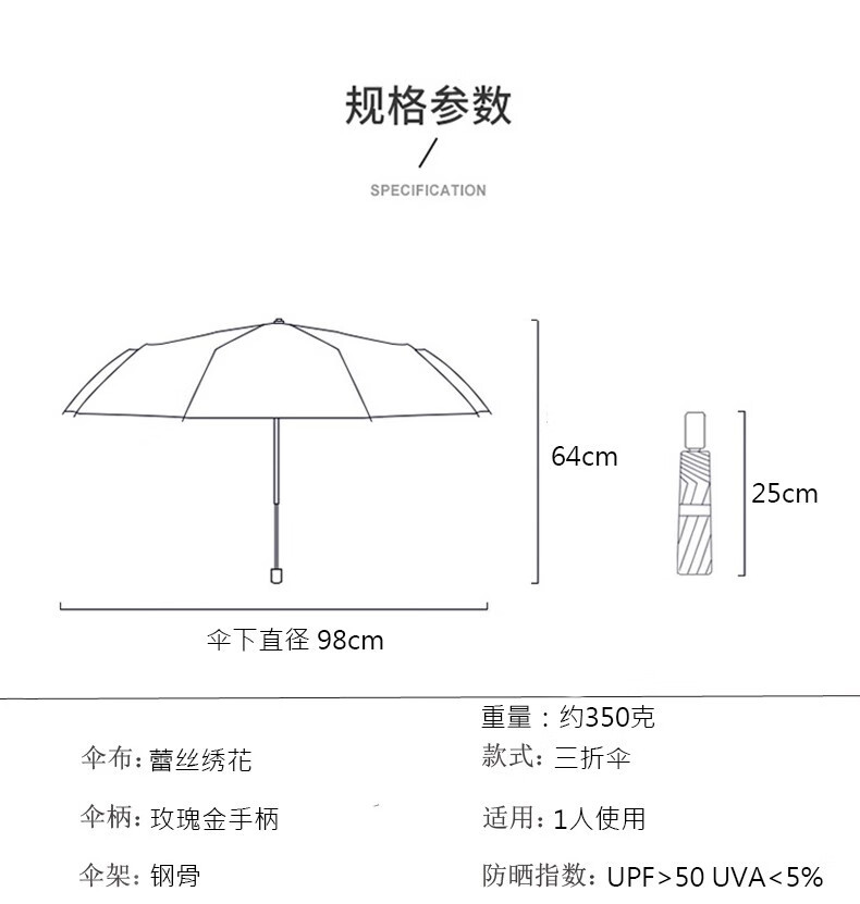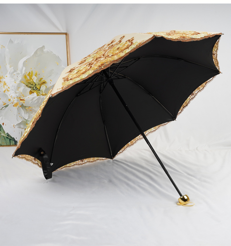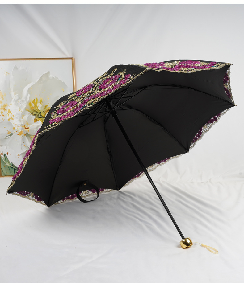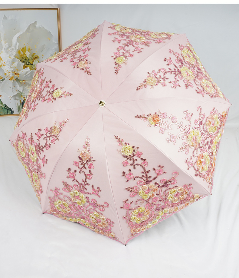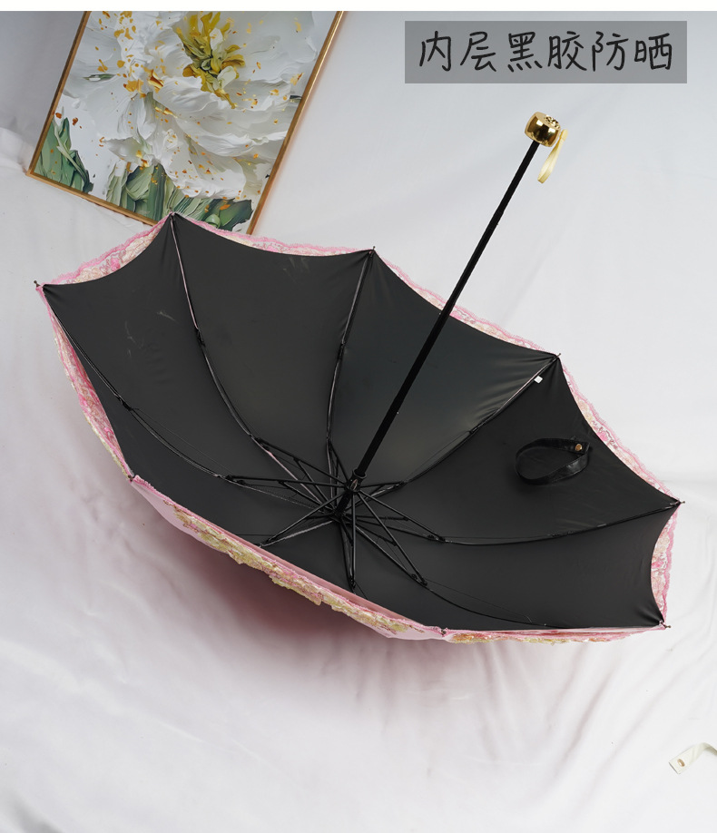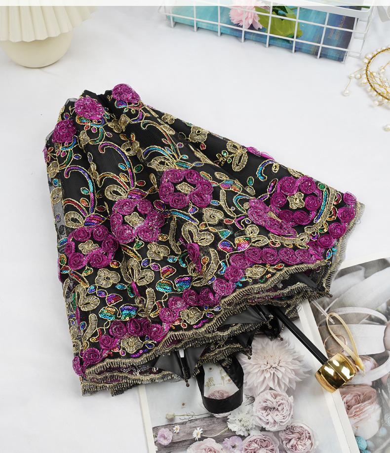 3 차원 수놓은 우산 여성 이중층 세골 레이스 수놓은 항자외선 3 배 태양 우산 이중목적 맑음 우산스토어 가기