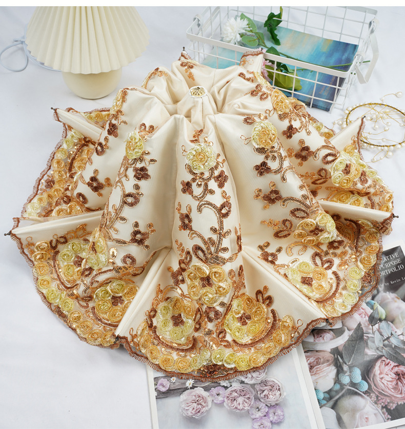 3 차원 수놓은 우산 여성 이중층 세골 레이스 수놓은 항자외선 3 배 태양 우산 이중목적 맑음 우산
