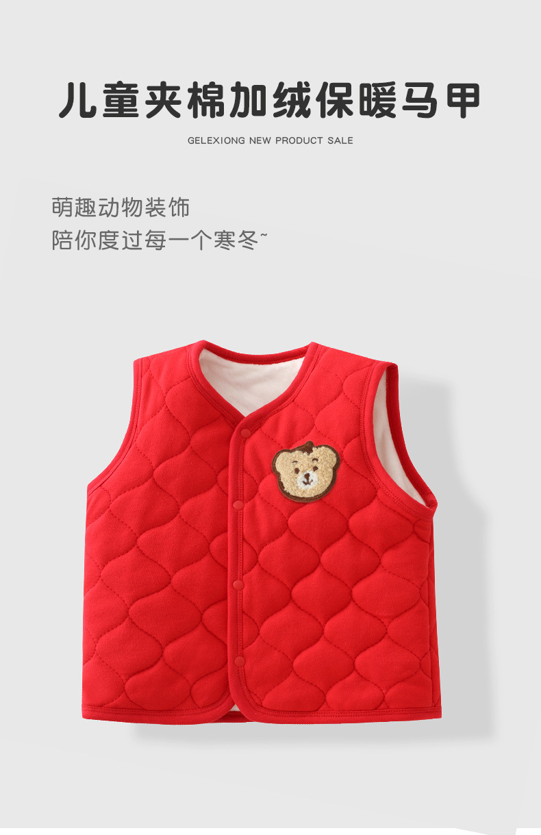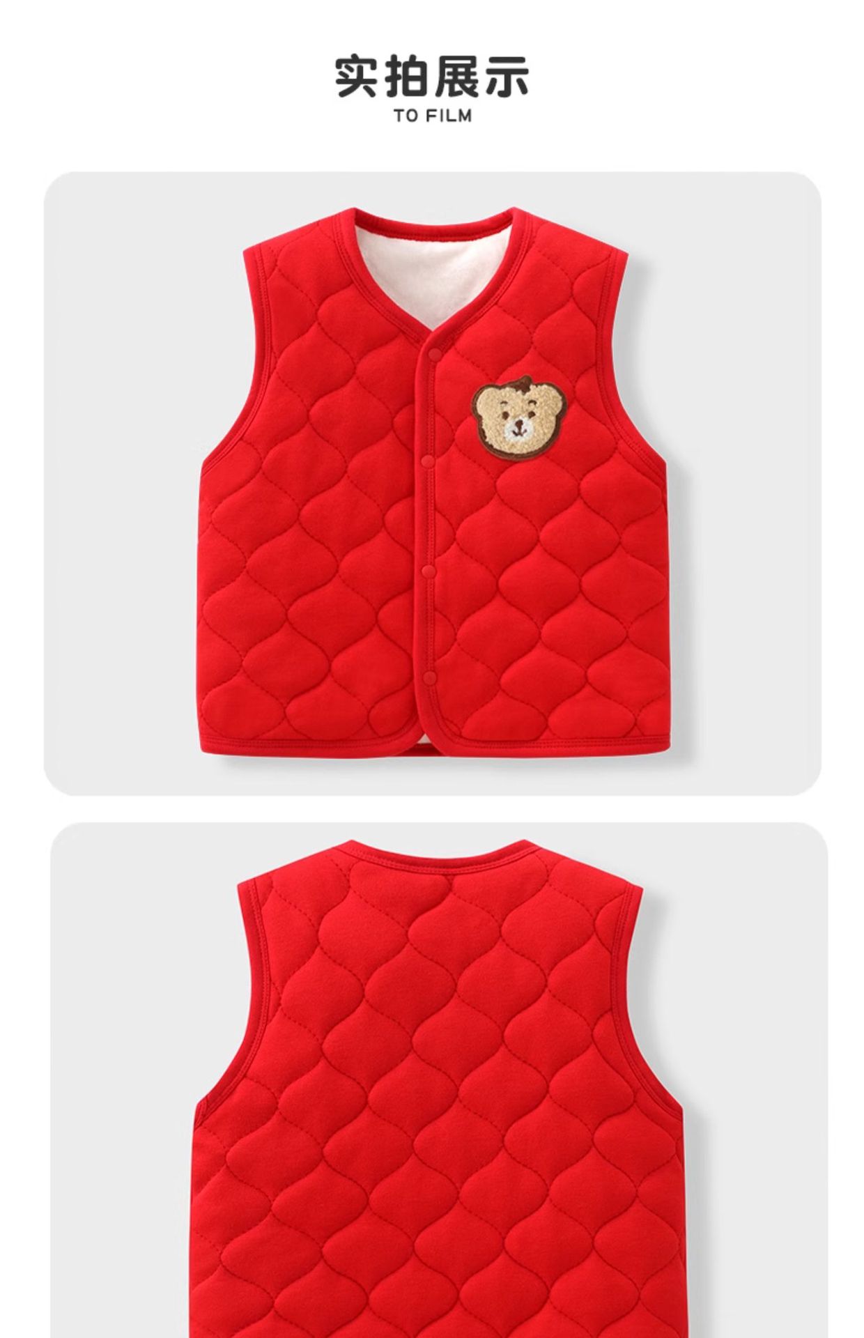 어린이 조끼 빨간색 퀼트 가을, 겨울 아기 소년 조끼 플러스 벨벳 두꺼운 축제 새해 착용 아기 조끼