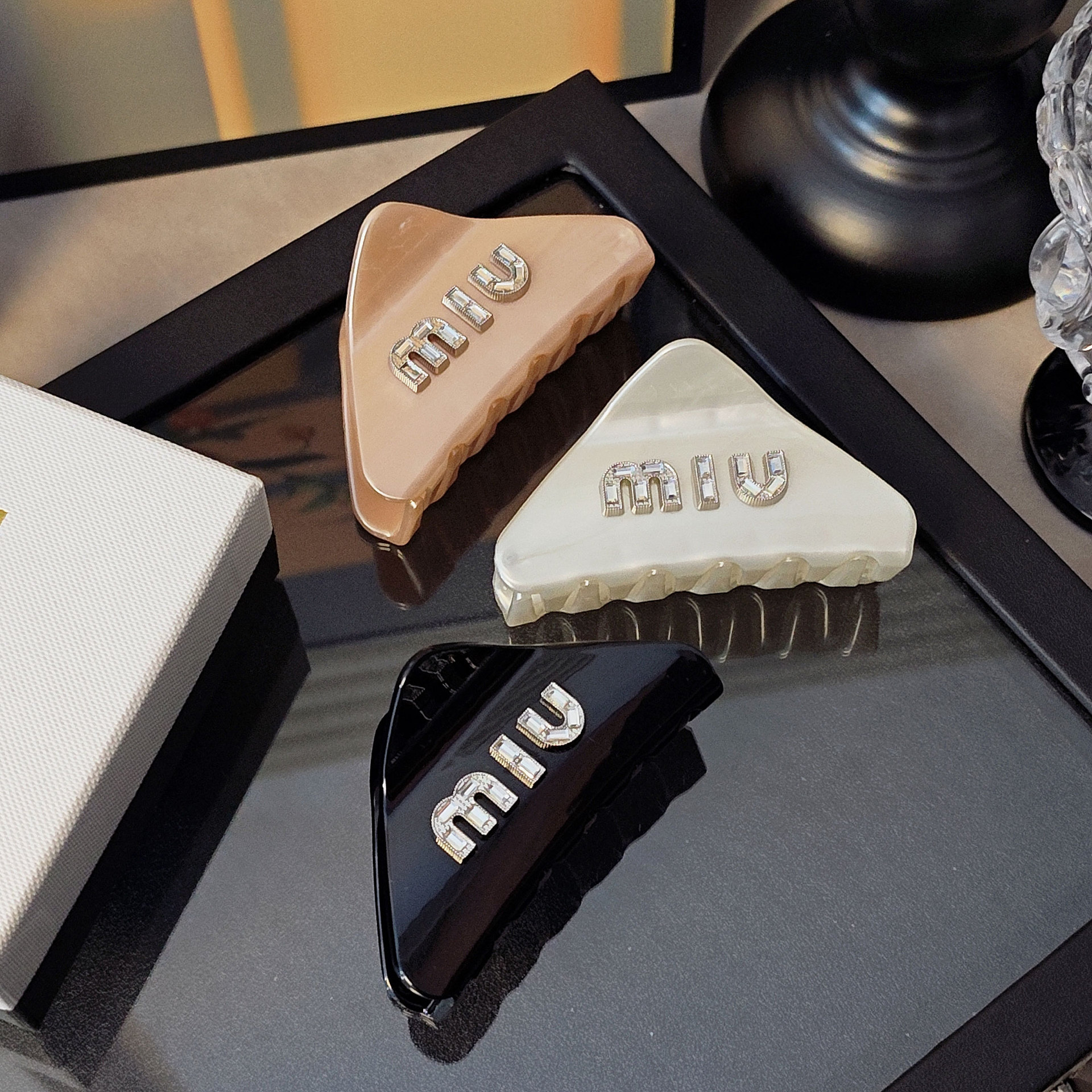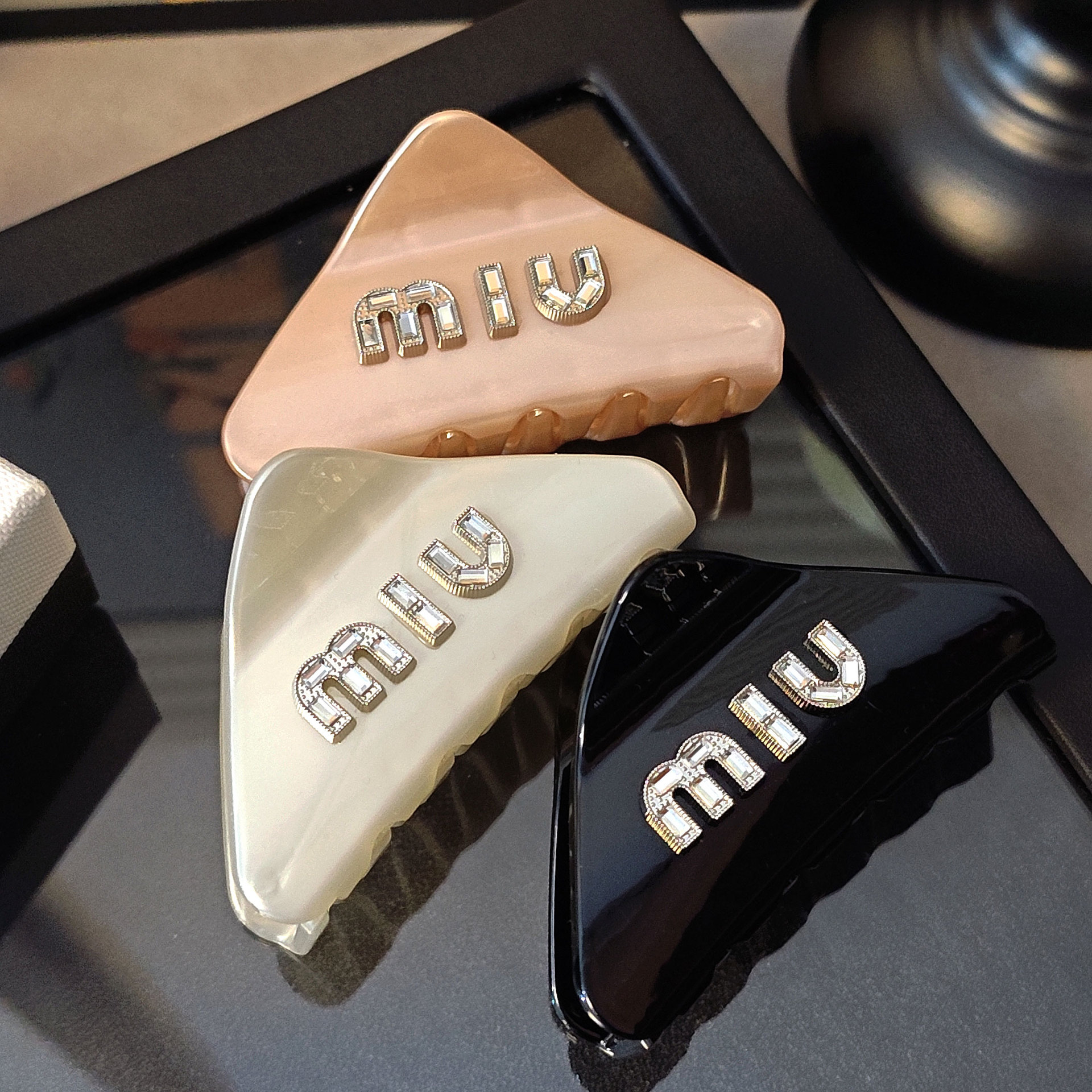 새로운 지르코늄 다이아몬드 M 편지 삼각형 라인스톤 미디엄 잡아 클립 여성용 헤어핀 하프 그랩 헤드 상어 클립 헤어 액세서리스토어 가기