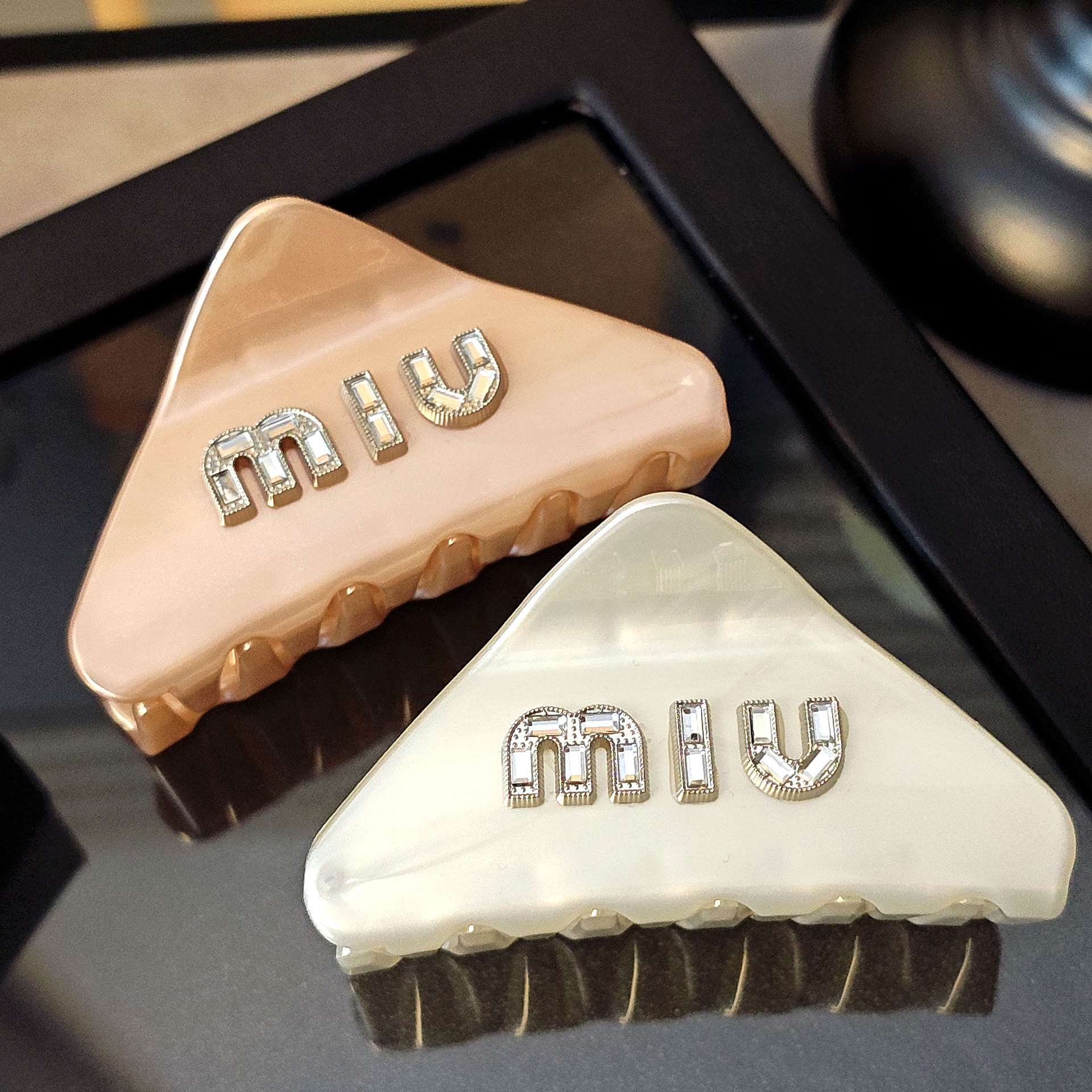 새로운 지르코늄 다이아몬드 M 편지 삼각형 라인스톤 미디엄 잡아 클립 여성용 헤어핀 하프 그랩 헤드 상어 클립 헤어 액세서리