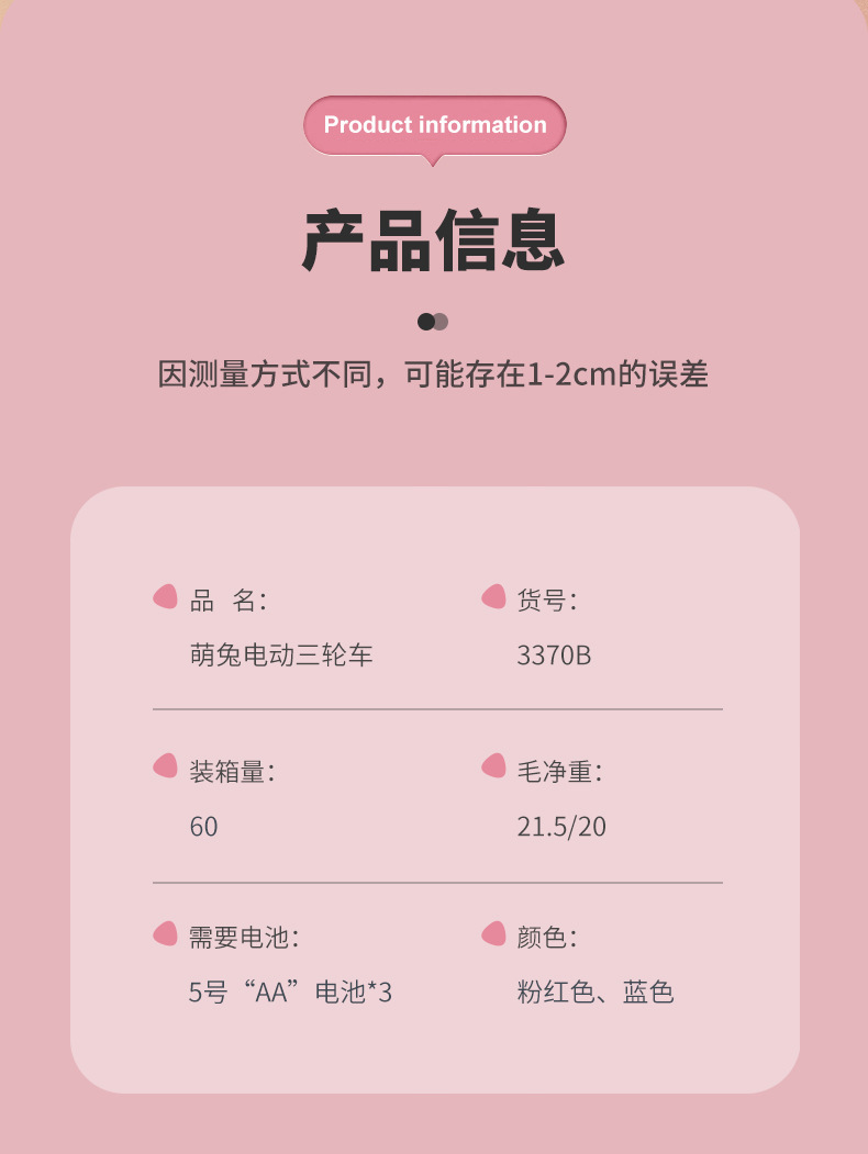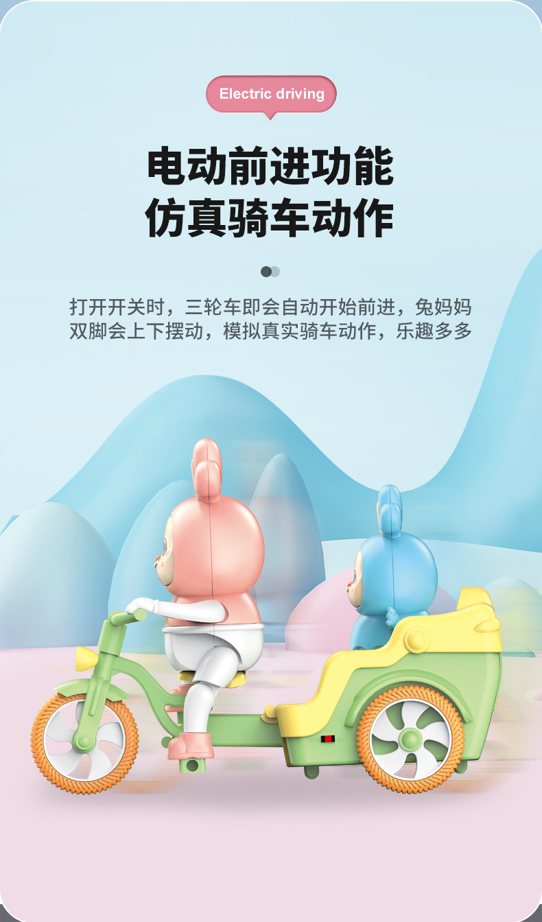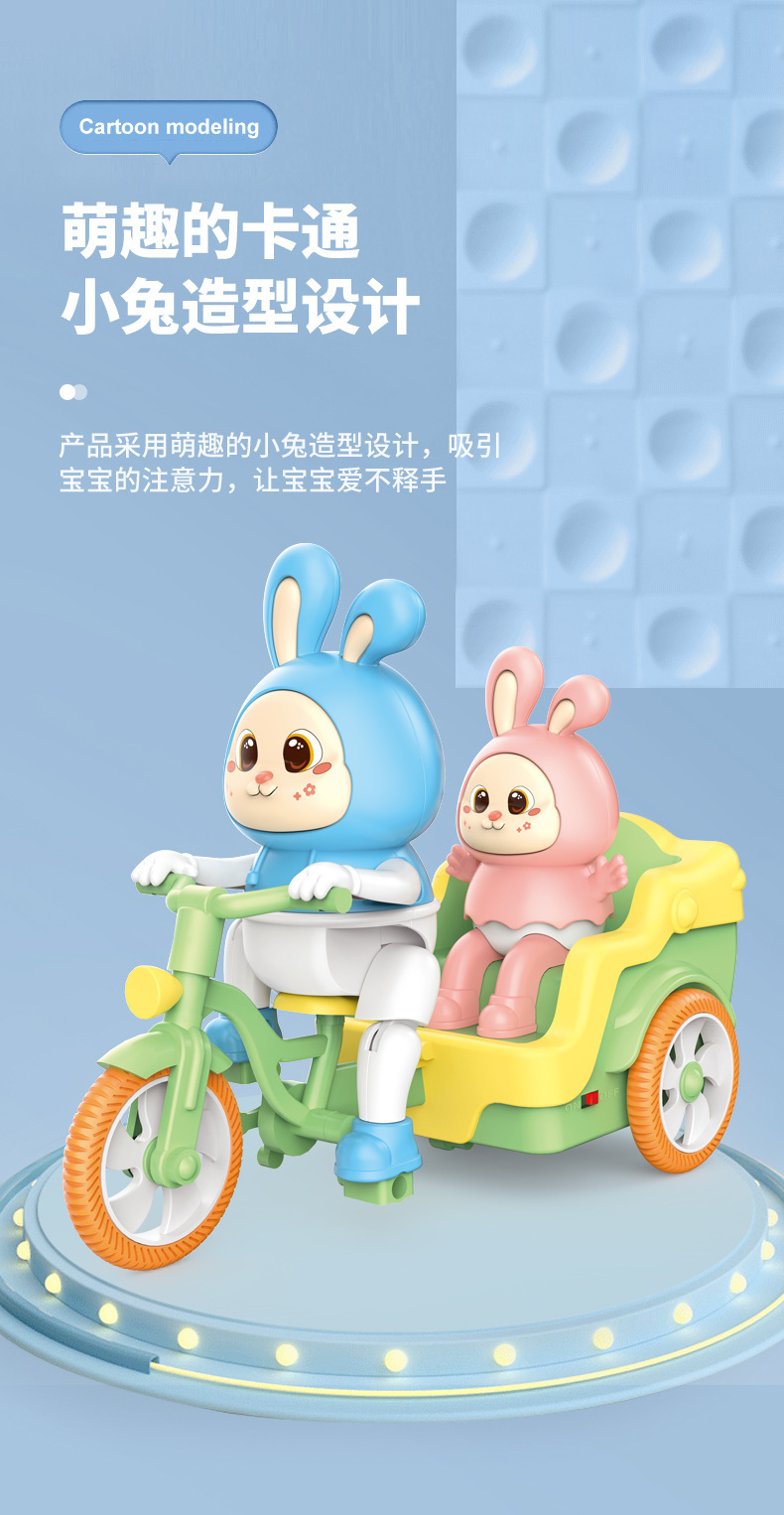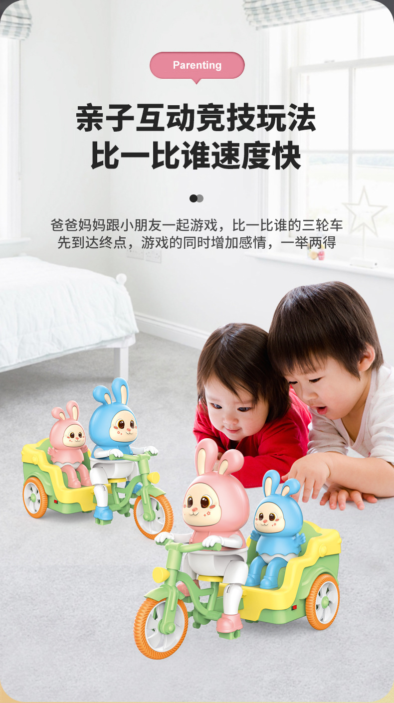 같은 전기 사랑스러운 토끼 페달 세발 자전거 음악 가벼운 스턴트 댄스 어린이 장난감 마구간 야시장 도매