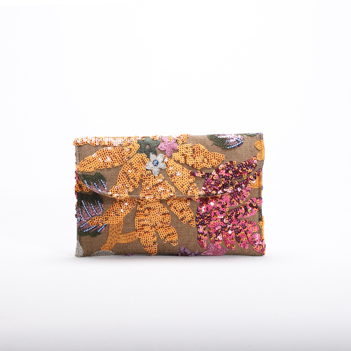 국경 간 고급 PVC 세퀸 이브닝 백 새로운 꽃 메쉬 자수 플립 봉투 가방 여성용 클러치 백