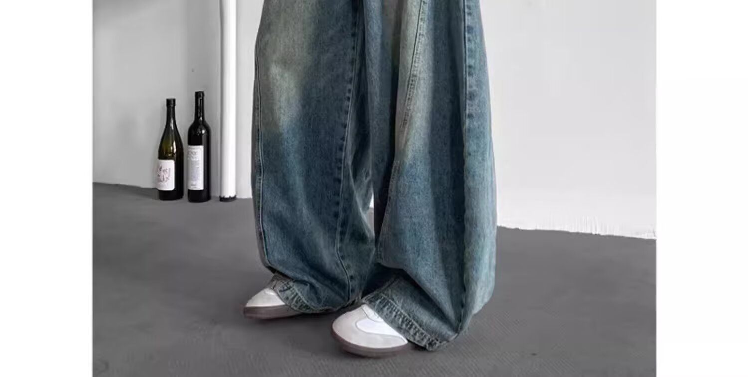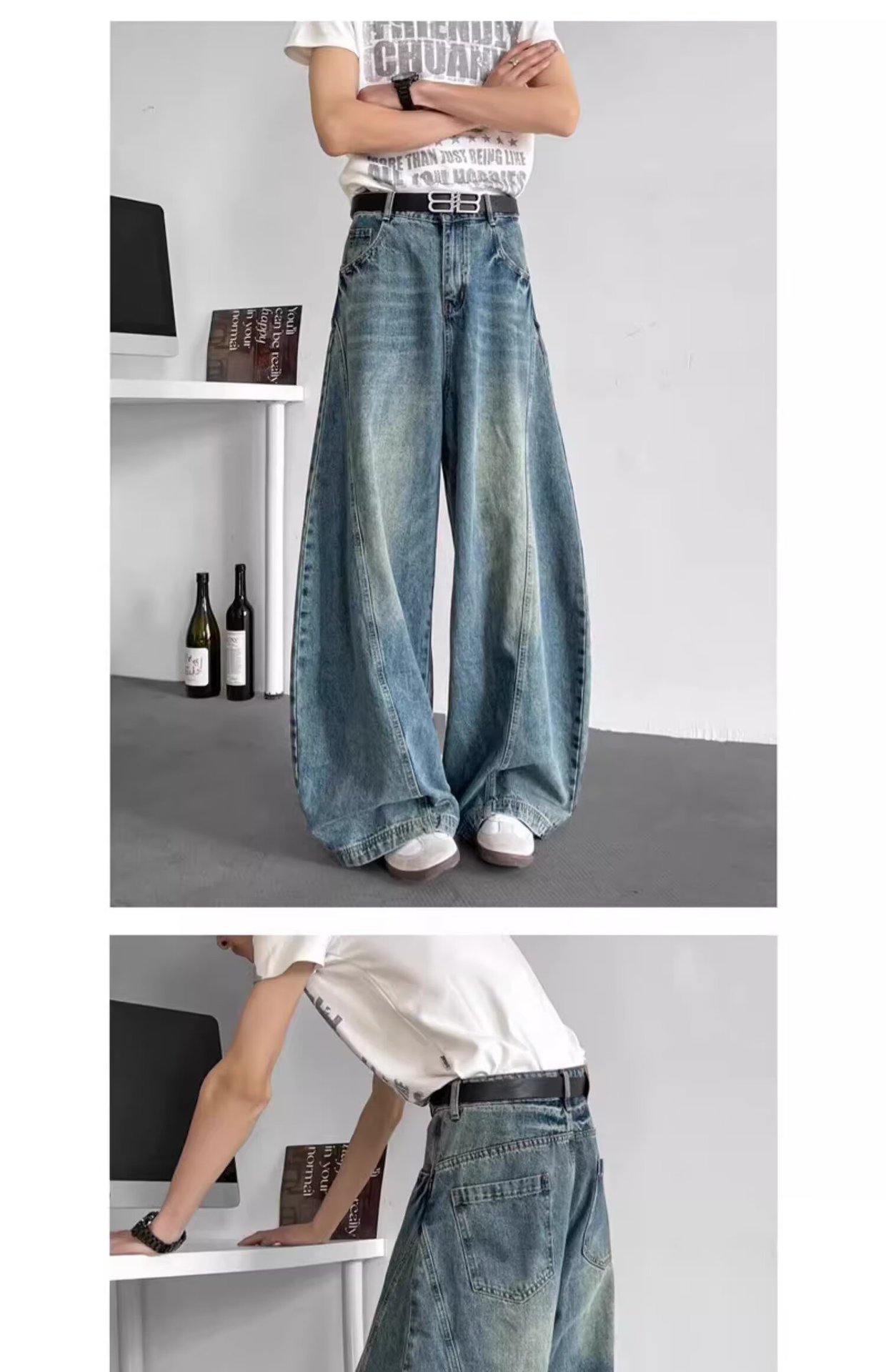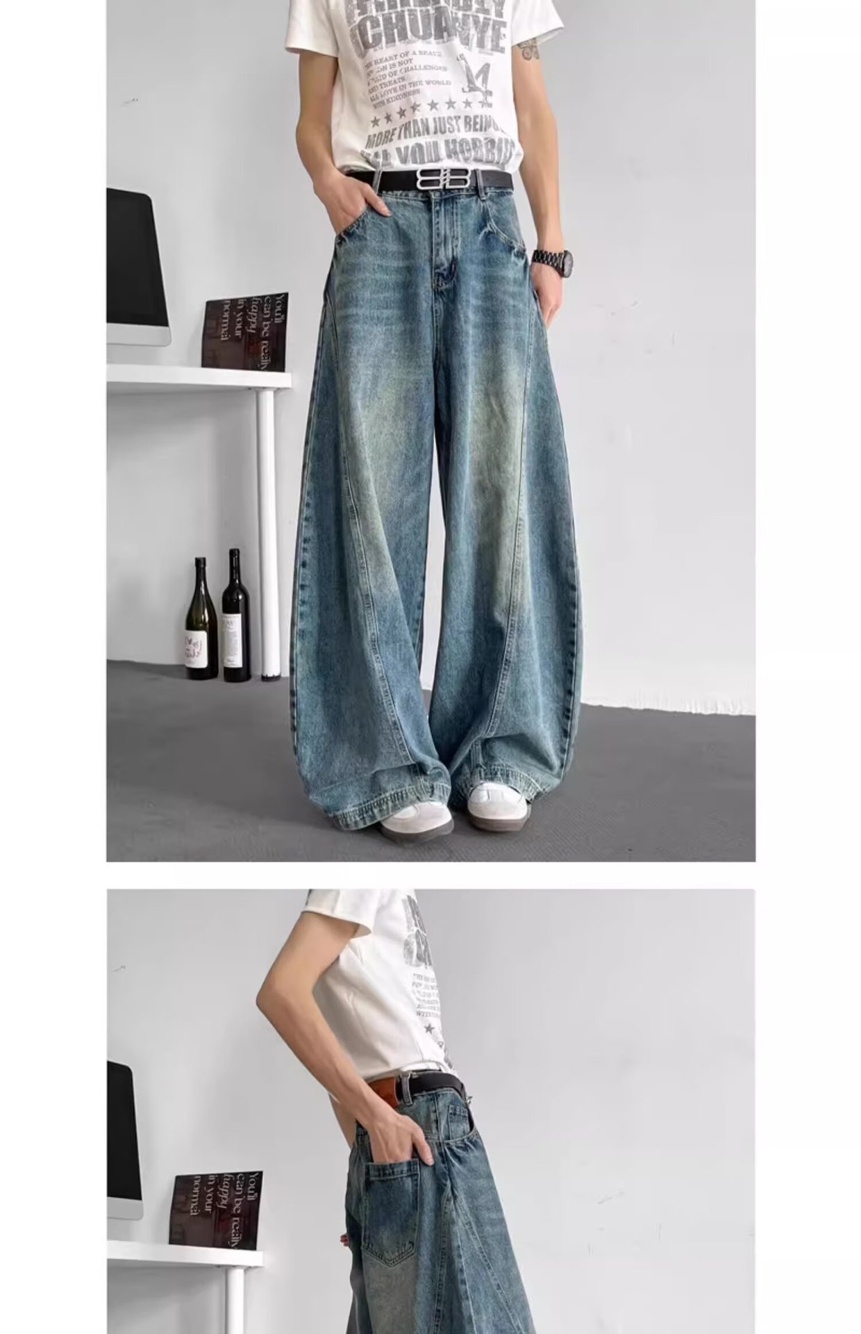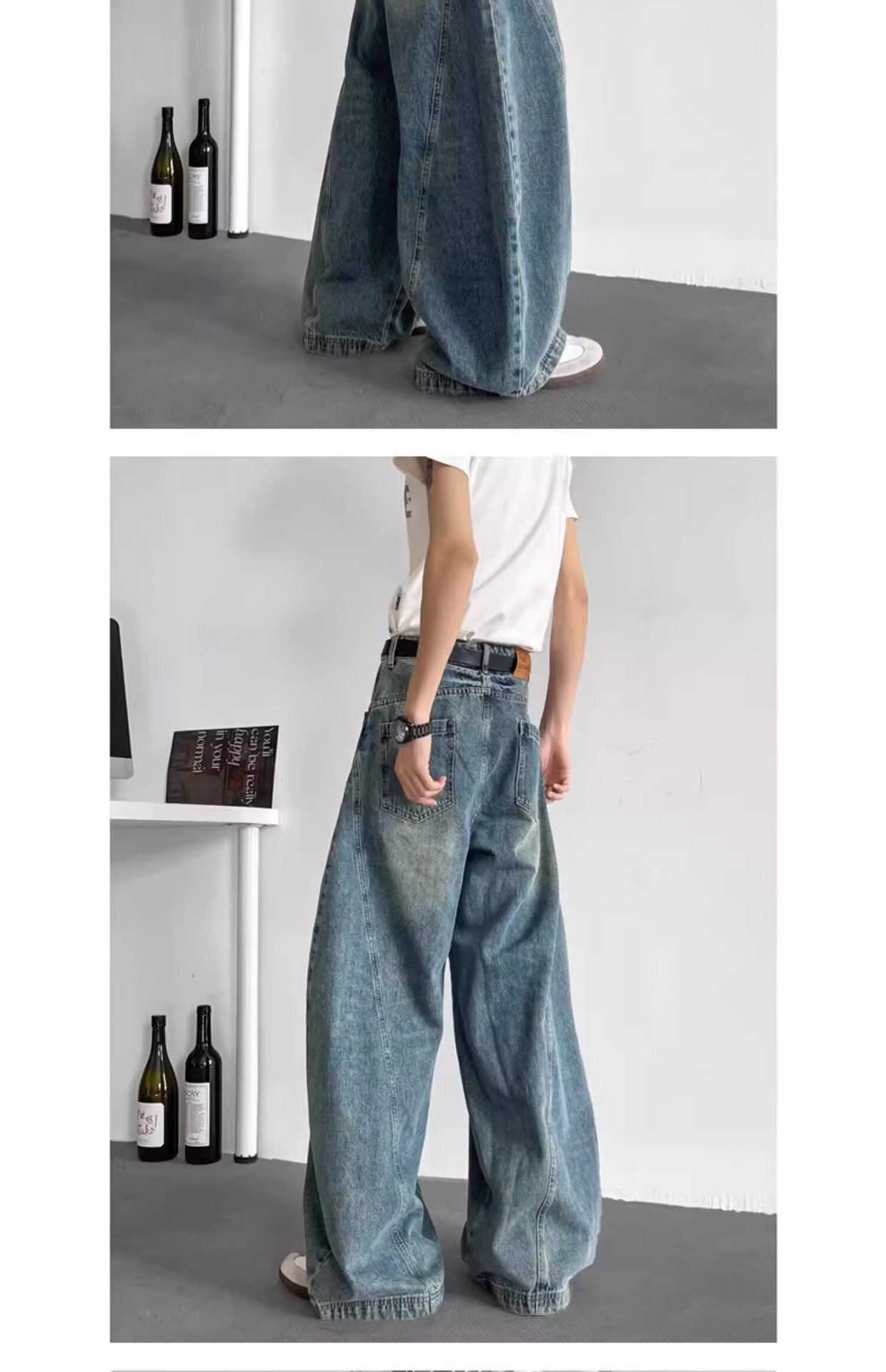 시미터 와이드 레그 아메리칸 레트로 워싱 및 디스트레스드 스트레이트 바닥 길이 청바지 남성용 루즈 하이 웨이스트 트렌디 브랜드 Dropshipping스토어 가기