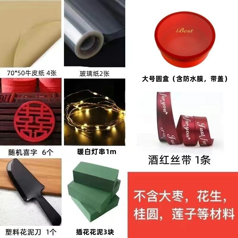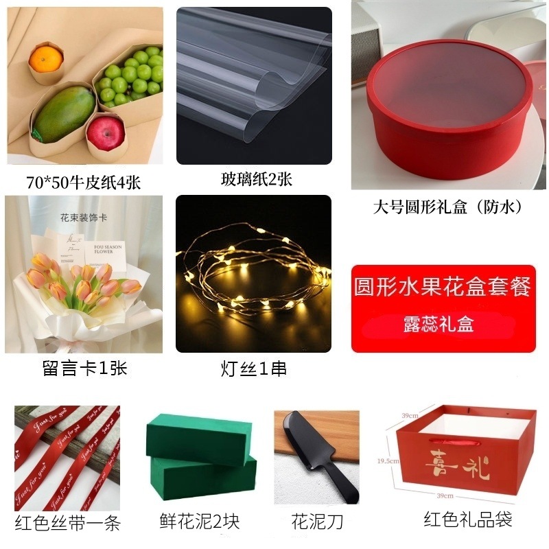 • 큰 빨간색 둥근 선물 상자 + 재료 패키지 전체 세트 + 선물 가방