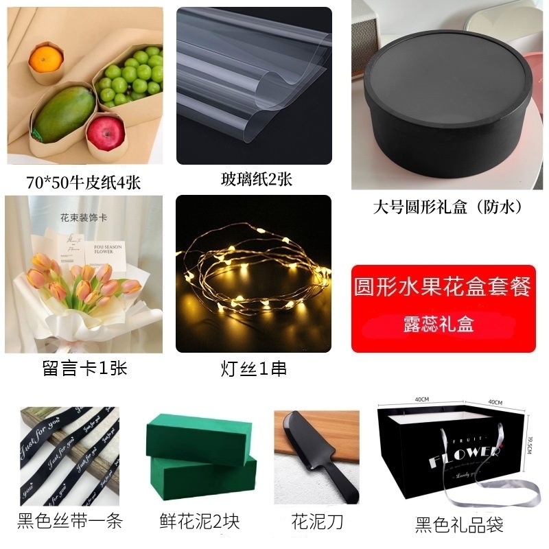 • 대형 검정색 원형 선물 상자 + 재료 패키지 전체 세트 + 선물 가방