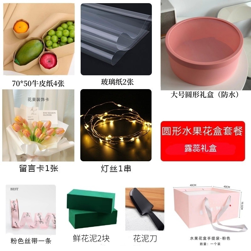 • 대형 핑크색 원형 선물 상자 + 재료 패키지 전체 세트 + 선물 가방