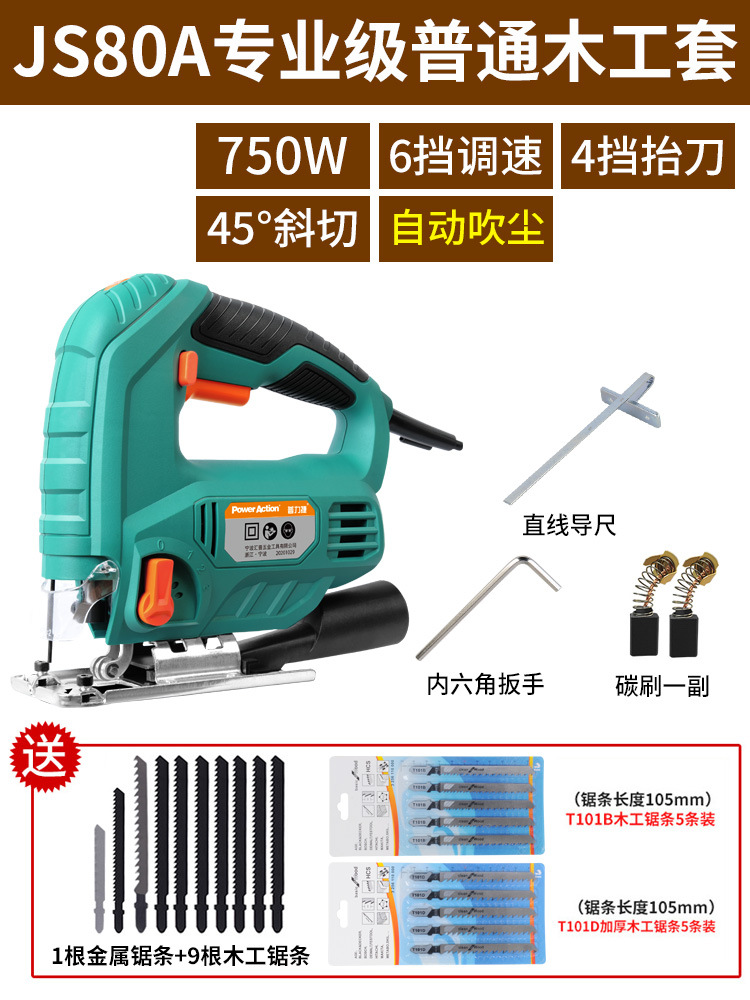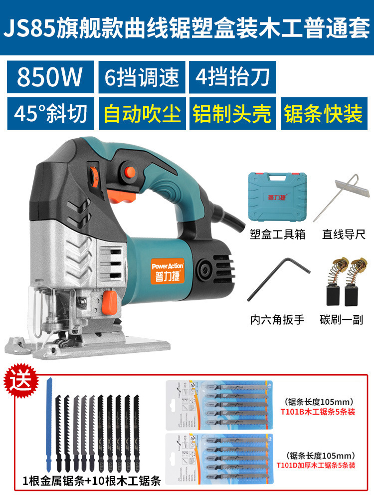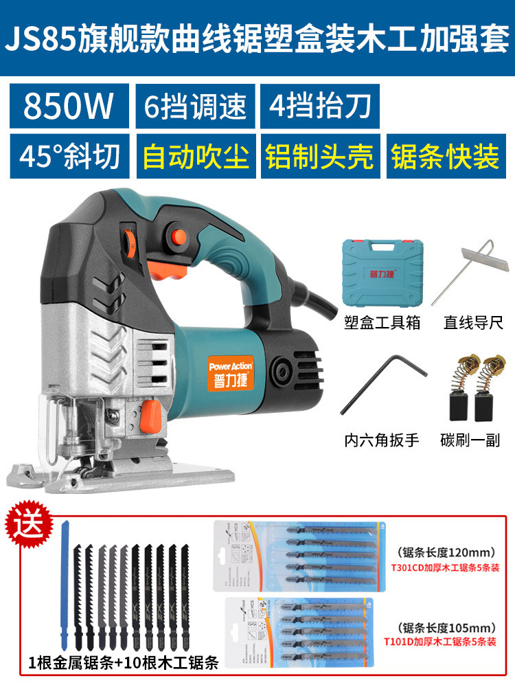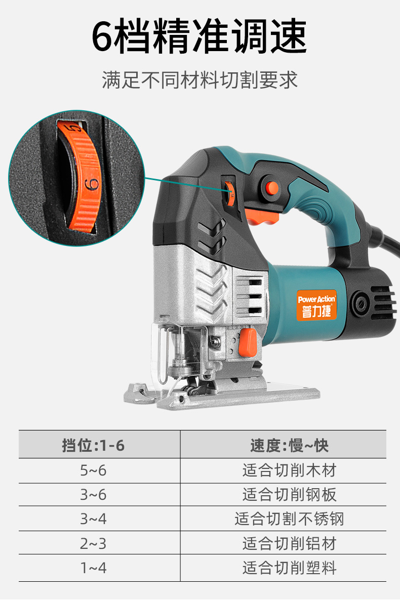 Pulijie 산업 등급 전기 지그는 목공 전기 톱 다기능 가정용 절단 기계 수동 톱 전동 공구를 보았다