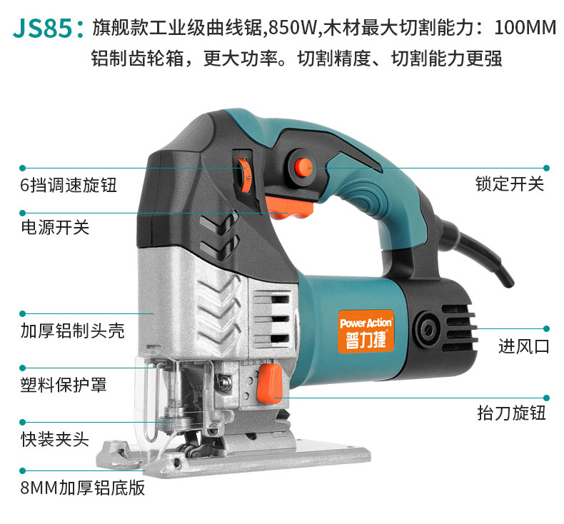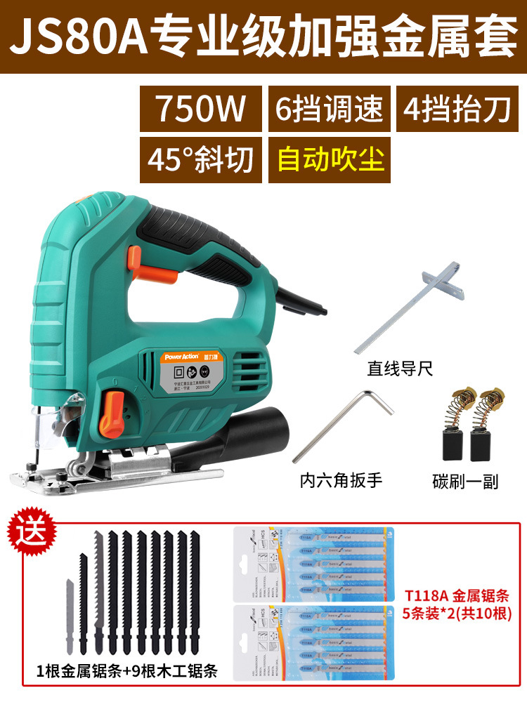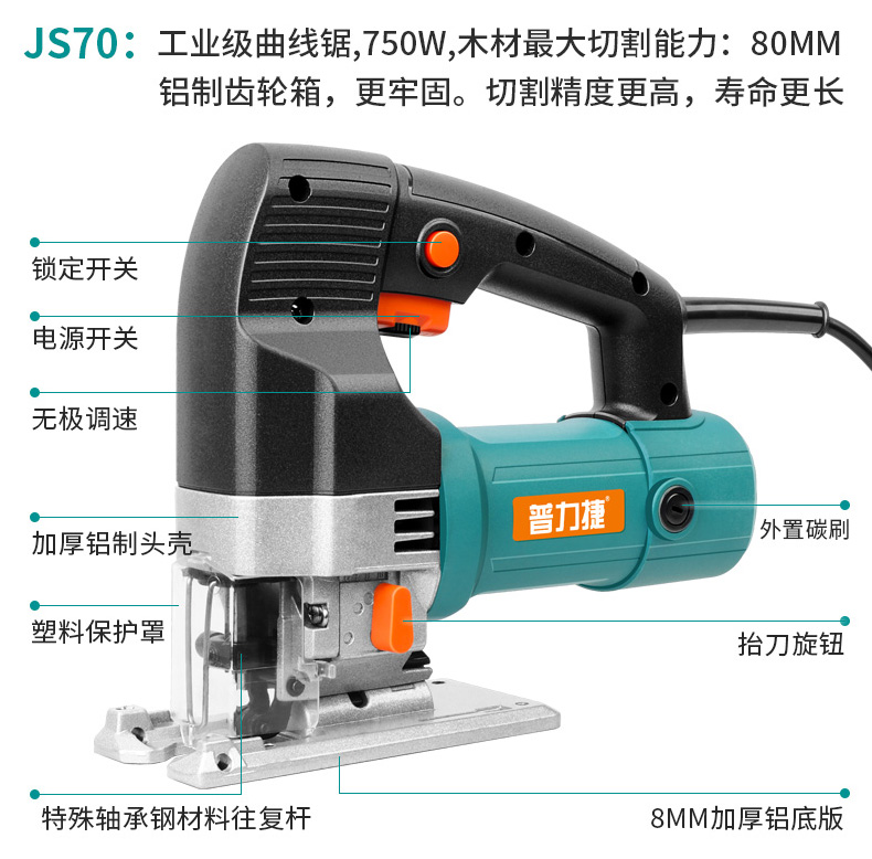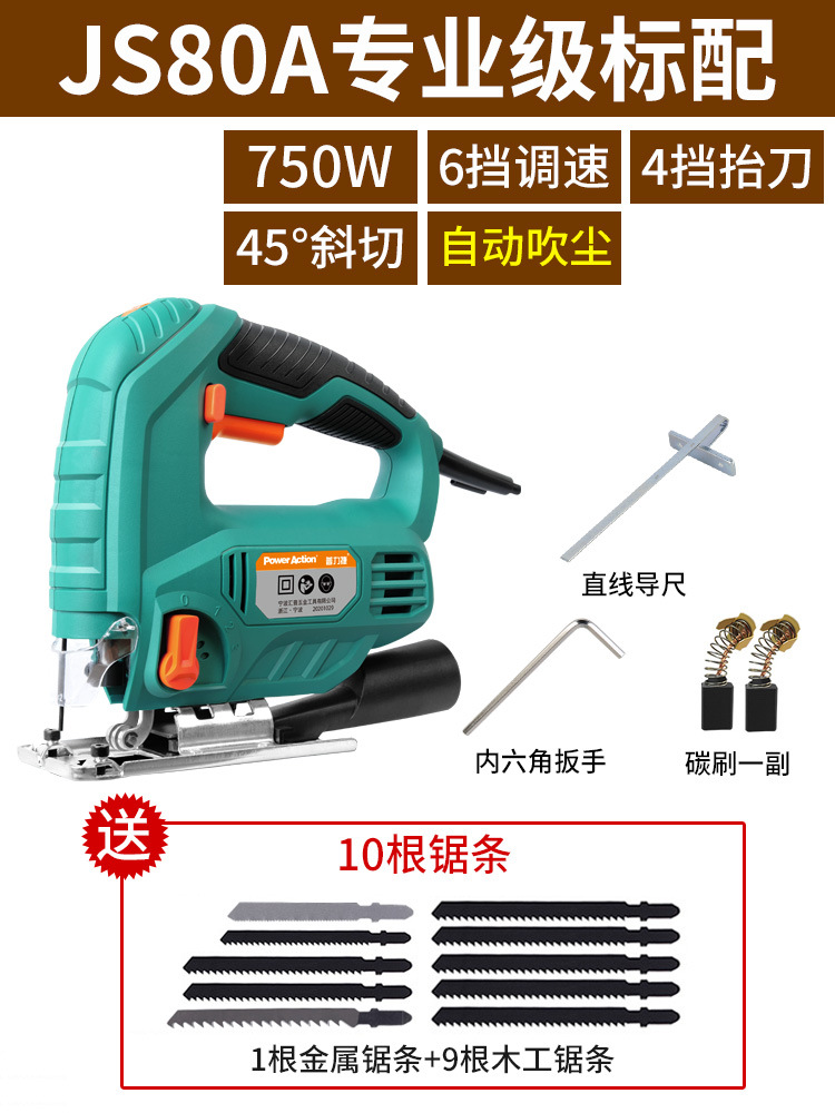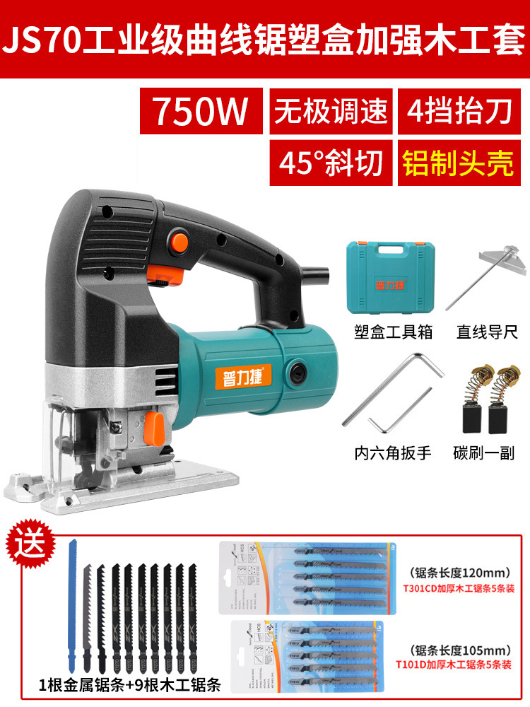 Pulijie 산업 등급 전기 지그는 목공 전기 톱 다기능 가정용 절단 기계 수동 톱 전동 공구를 보았다