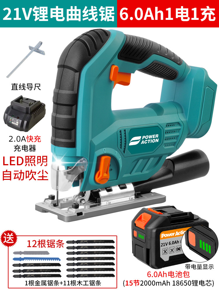 • 21V 리튬 전기 직소 [6.0Ah 전자 디스플레이] 배터리 1개, 충전 1개