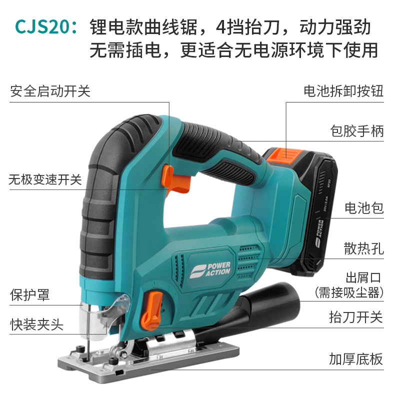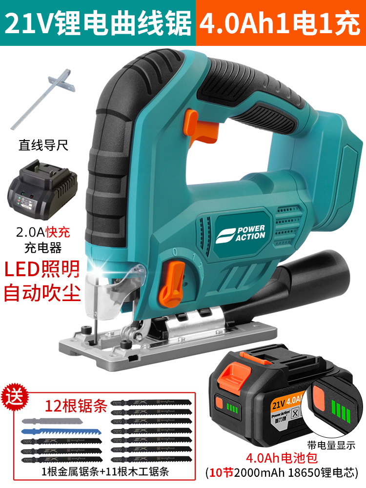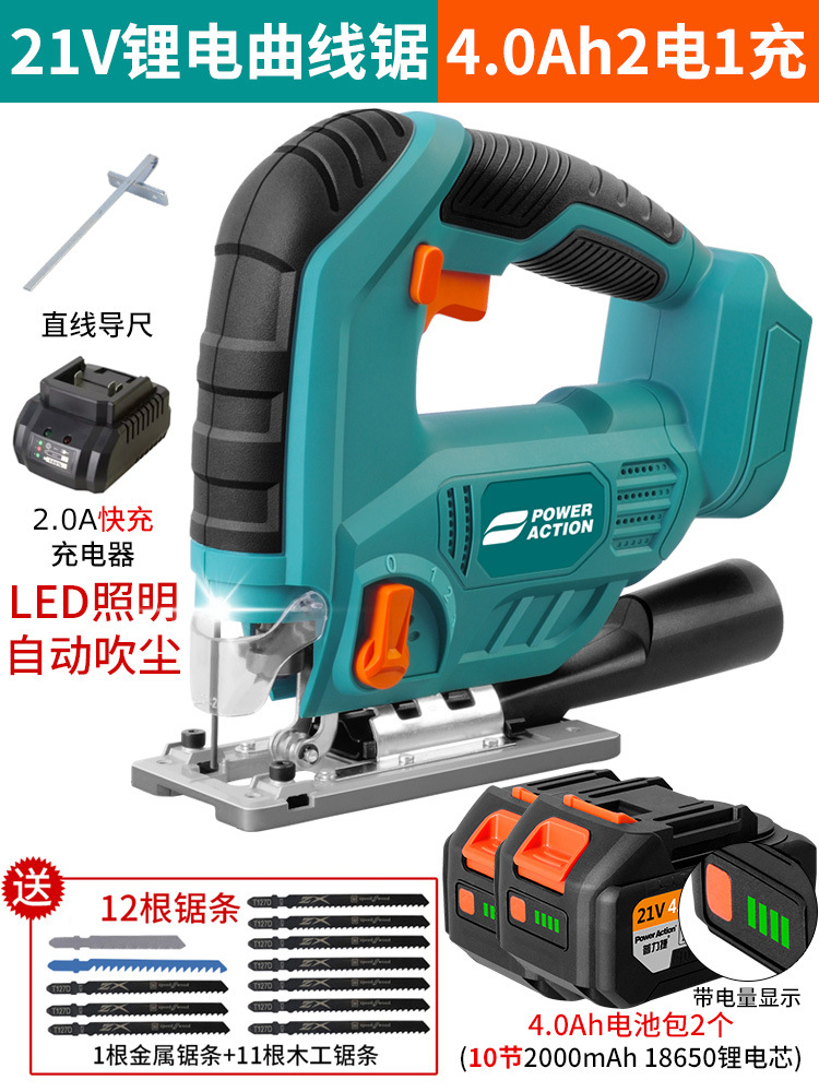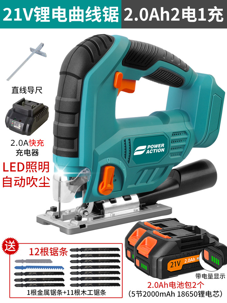 • 21V 리튬 전기 직소 [2.0Ah 전자 디스플레이] 배터리 1개, 충전 1개