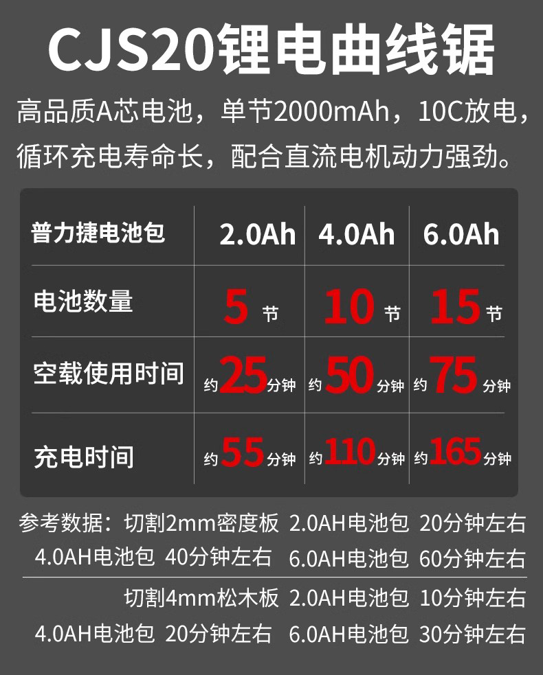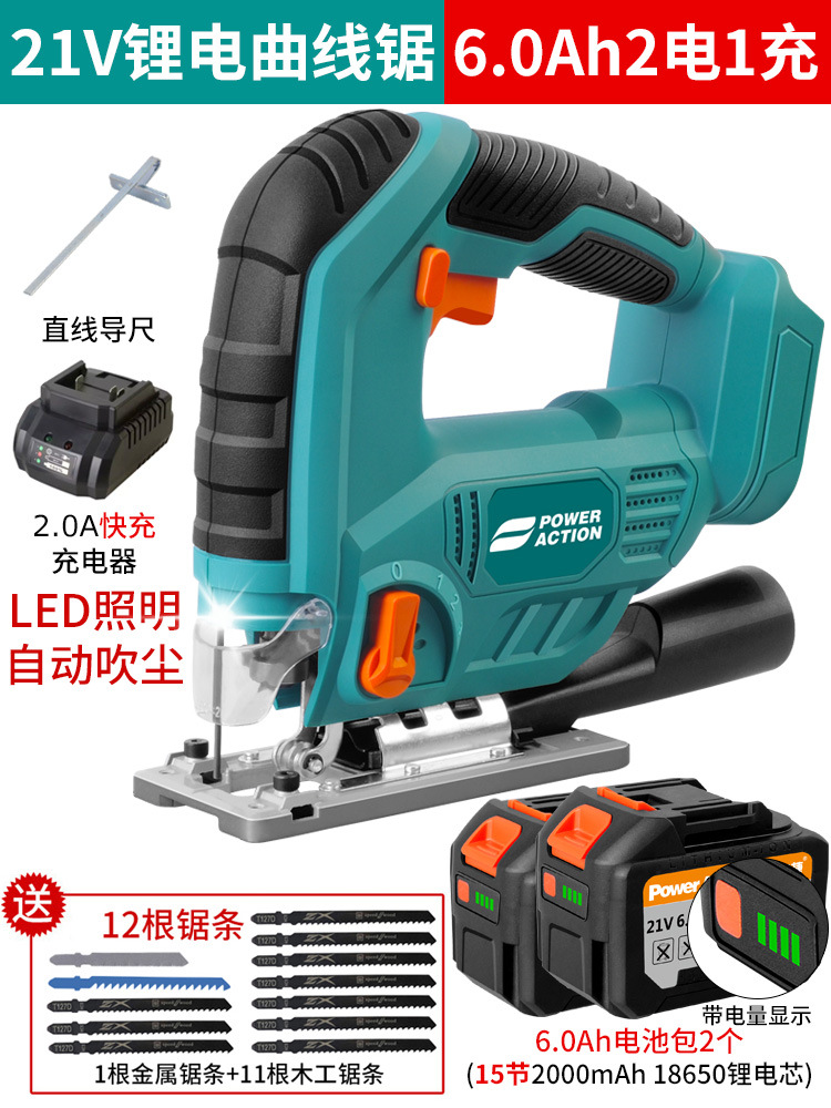 • 21V 리튬 전기 직소 [6.0Ah 전자 디스플레이] 배터리 2개 및 충전 1개