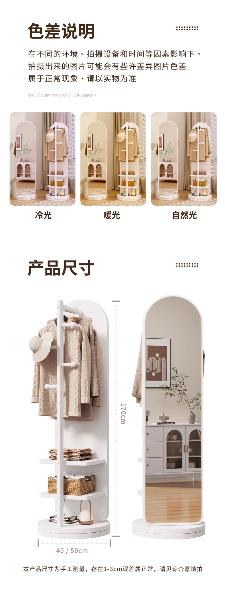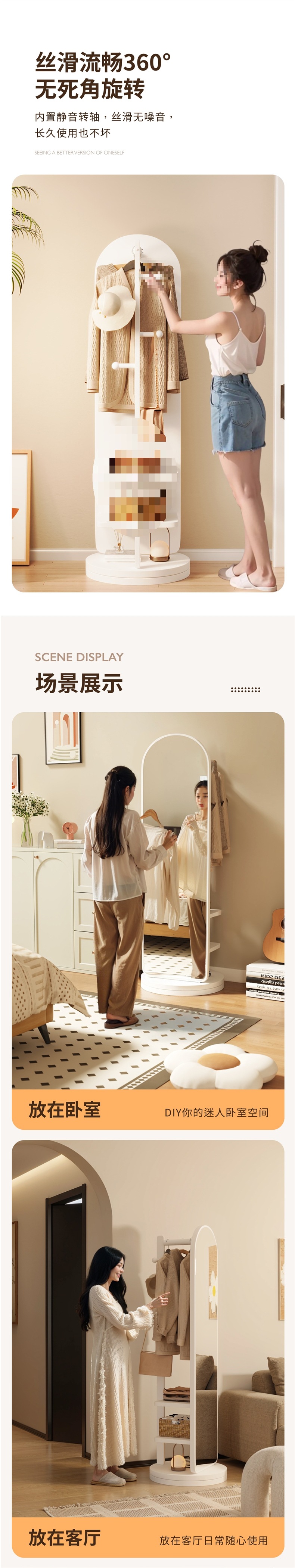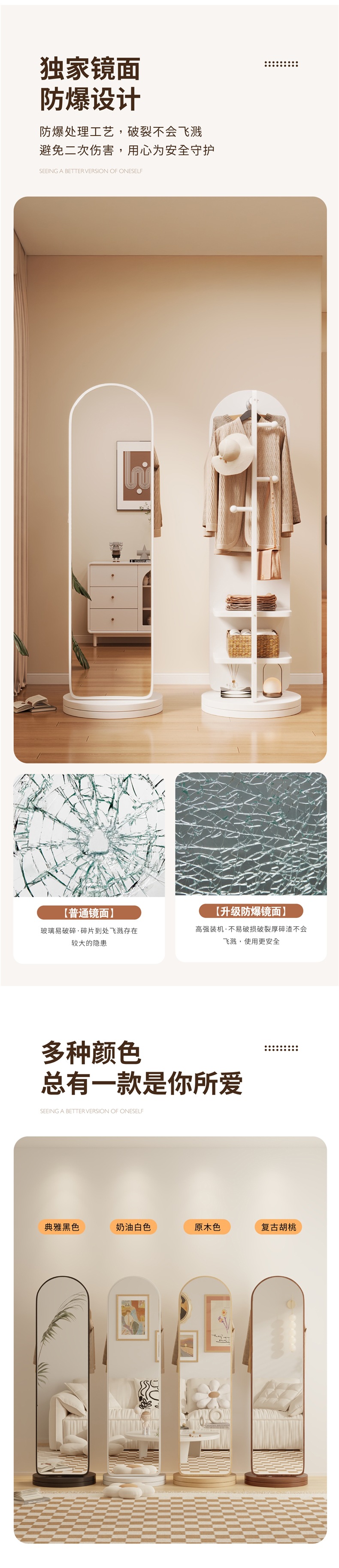 회전 전체 길이 거울 바닥 거울 가정용 침실 보관 랙 교수형 코트 랙 통합 드레싱 거울 대형 피팅 거울스토어 가기