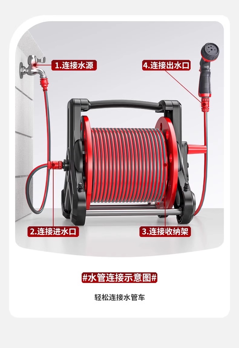 • 고압물총(설치 불필요) 호스 40m개 + 수도관 랙, 부속품 무료 [벽걸이 가능]