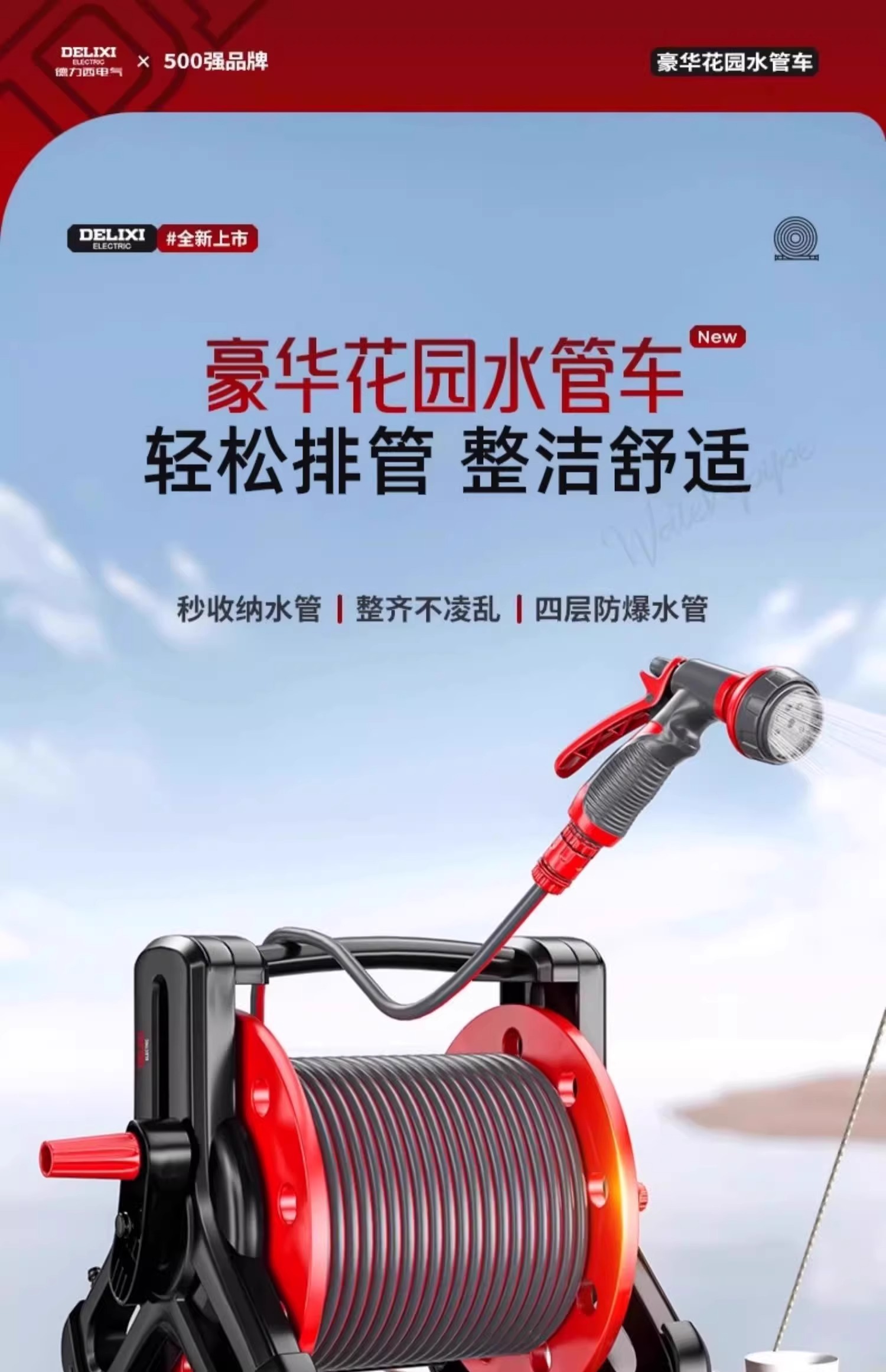 Delixi 전기 자동차 세척 물 총 고압 가정용 물 파이프 호스 저장 파이프 코일러 안뜰 급수 세척스토어 가기