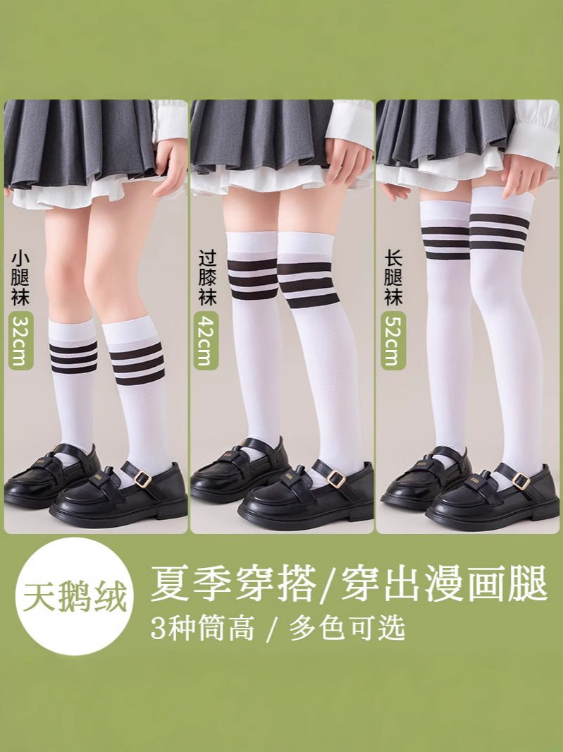 봄과 여름 얇은 어린이 스타킹 검은 학생 높은 무릎 양말 스포츠 줄무늬 아기 양말 제조 업체 도매스토어 가기
