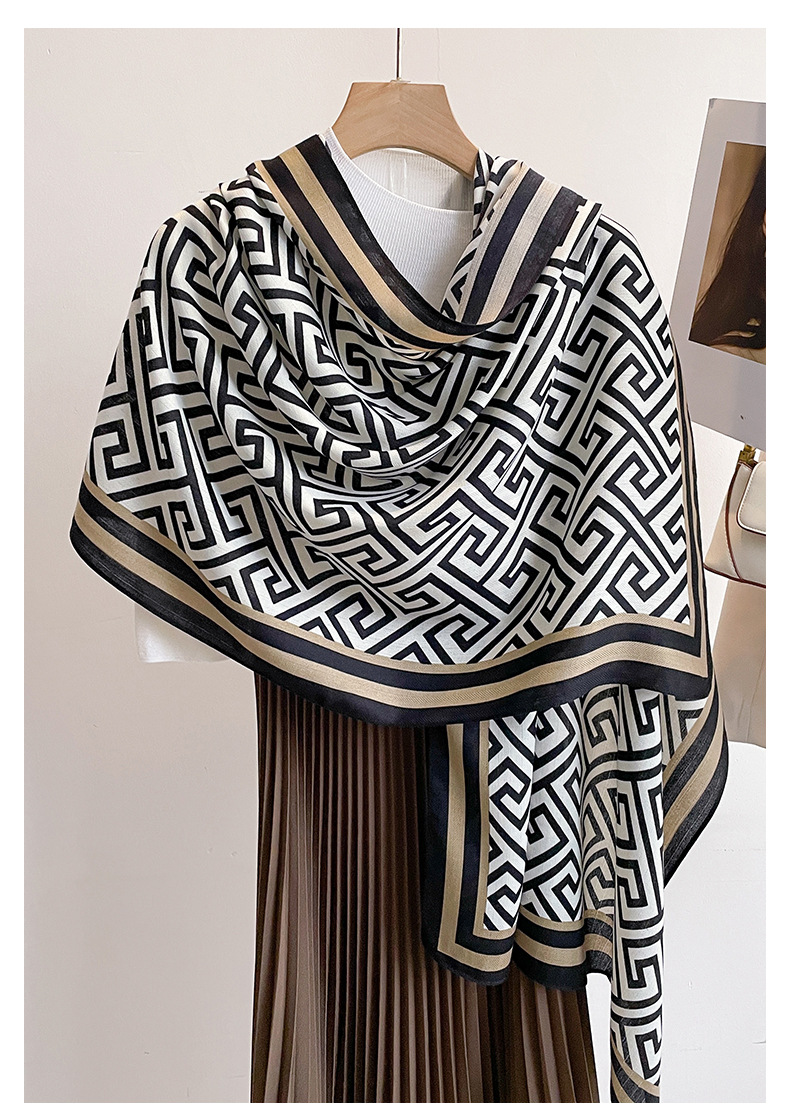 한국식 다크 브라운 편지 외래식 얇은면과 린넨 긴 스카프 여성의 봄과 여름 얇은 따뜻한 면과 린넨 실크 스카프 목도리 에어컨스토어 가기
