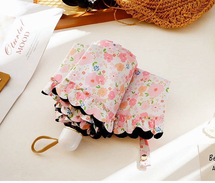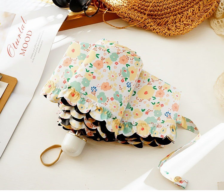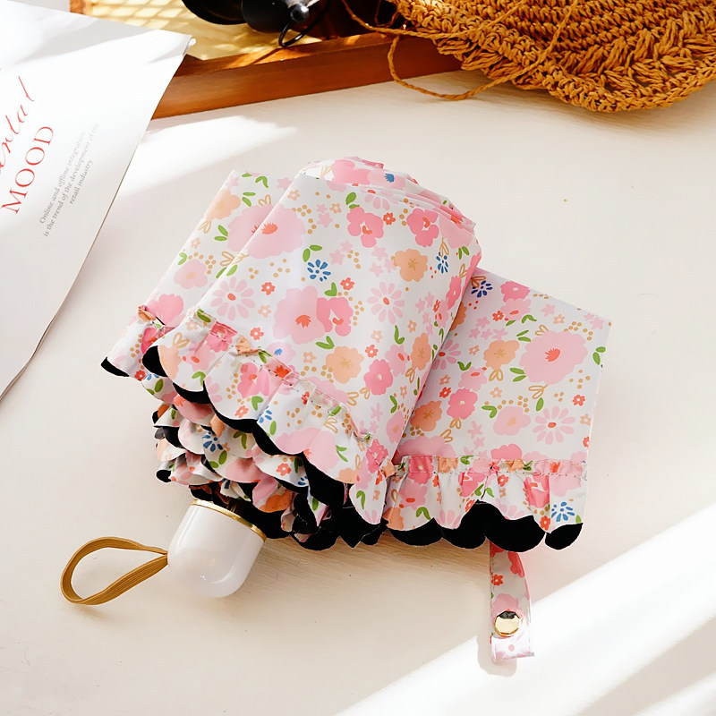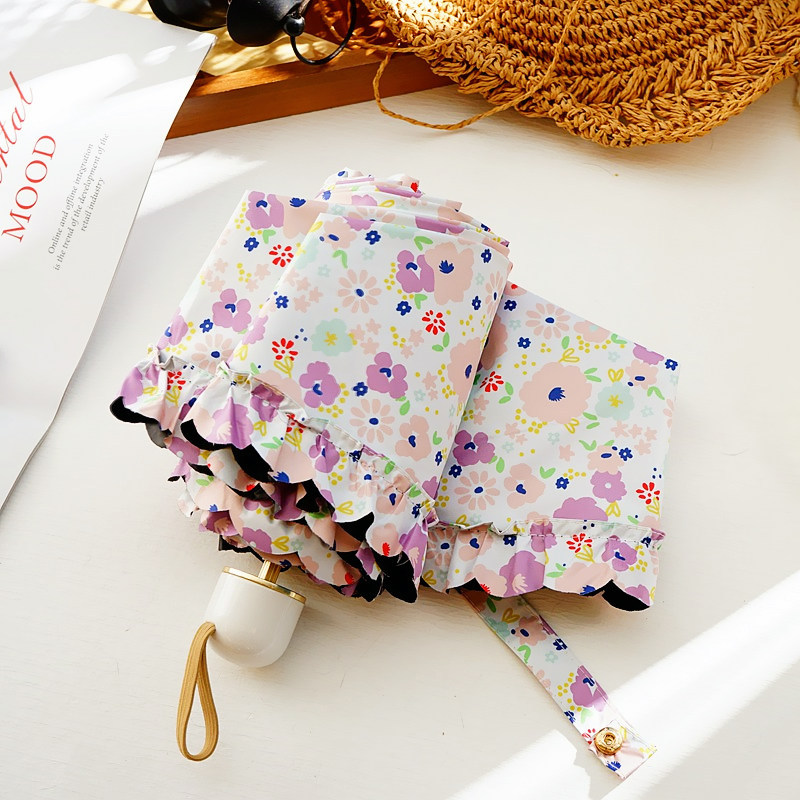 일본 꽃 차양 초경량 검은 젤 5 배 우산 여성의 소형 휴대용 이중 목적 태양 우산 UV 보호