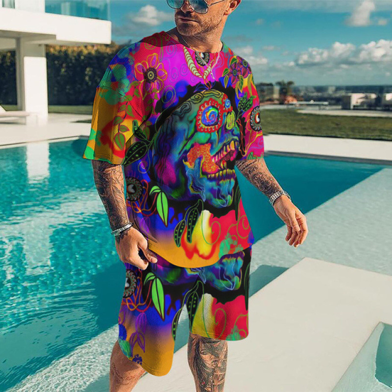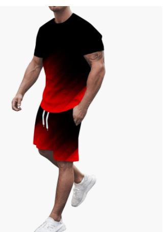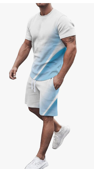 2025 대외 무역 여름 새로운 남성 캐주얼 티셔츠 반바지 투피스 인쇄 십대 스포츠웨어 티셔츠 세트