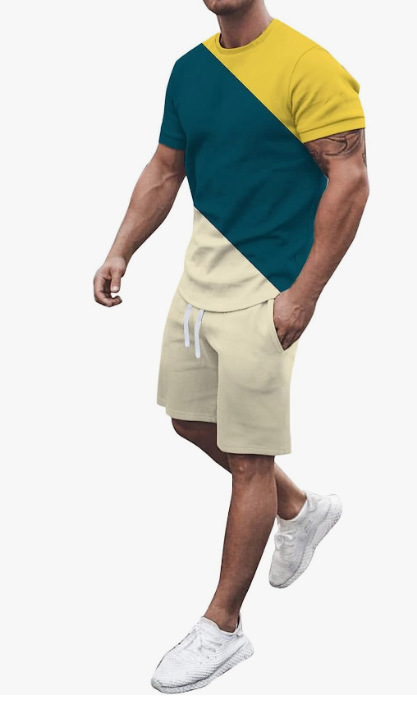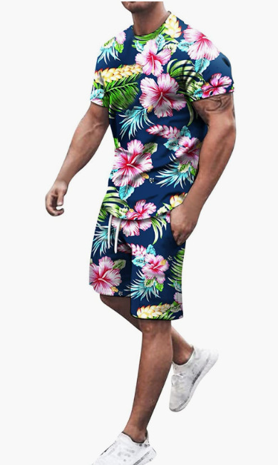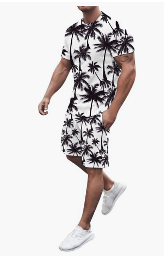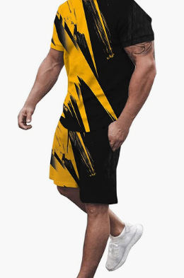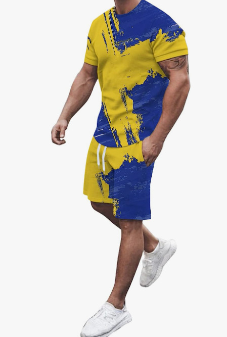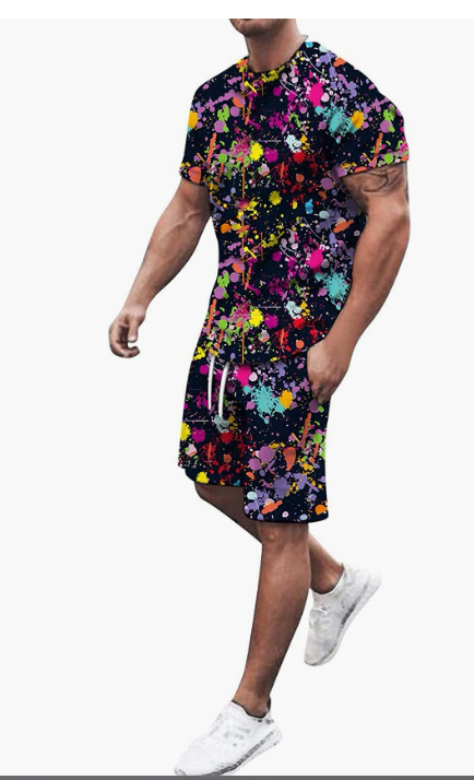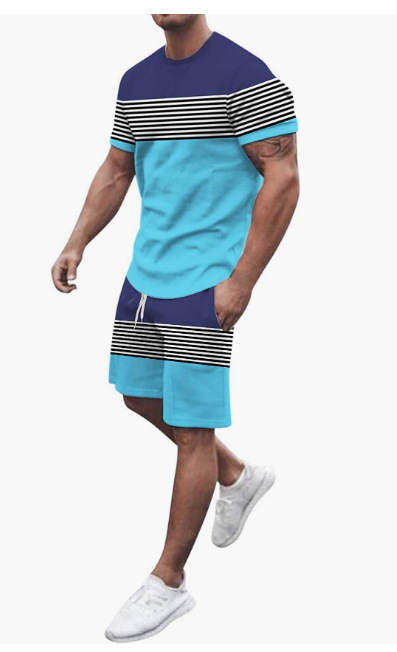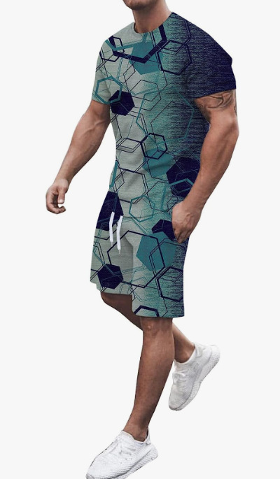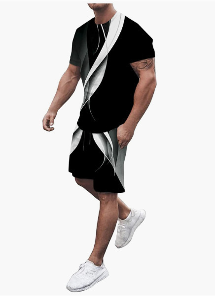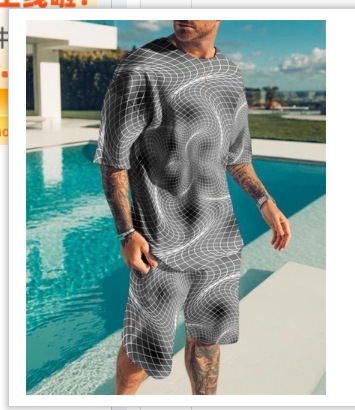 2025 대외 무역 여름 새로운 남성 캐주얼 티셔츠 반바지 투피스 인쇄 십대 스포츠웨어 티셔츠 세트스토어 가기