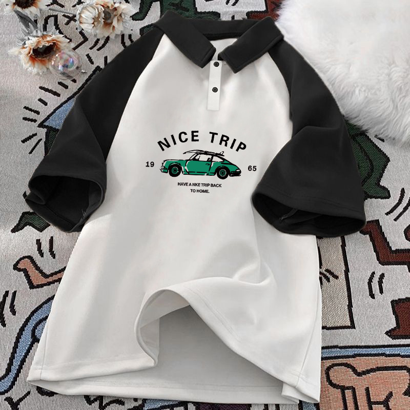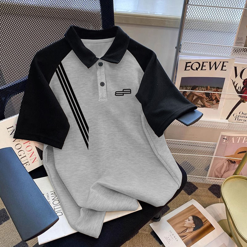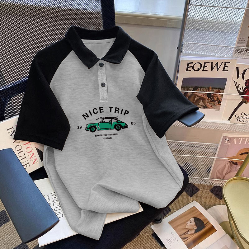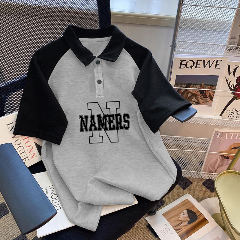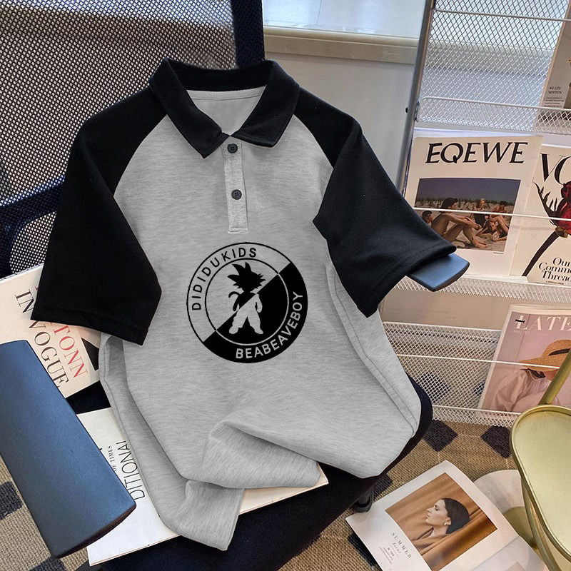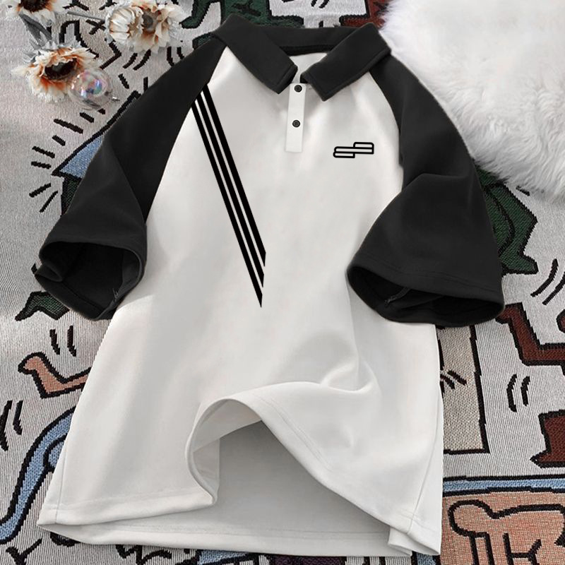 남학생 면 바느질 폴로 셔츠 탑 여름 원피스 잘 생긴 느슨한 올매치 대형 어린이 옷깃 반팔 티셔츠 트렌디스토어 가기
