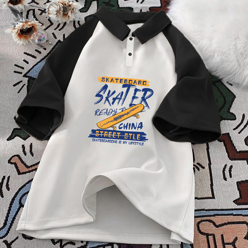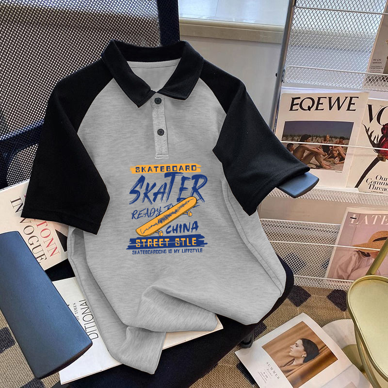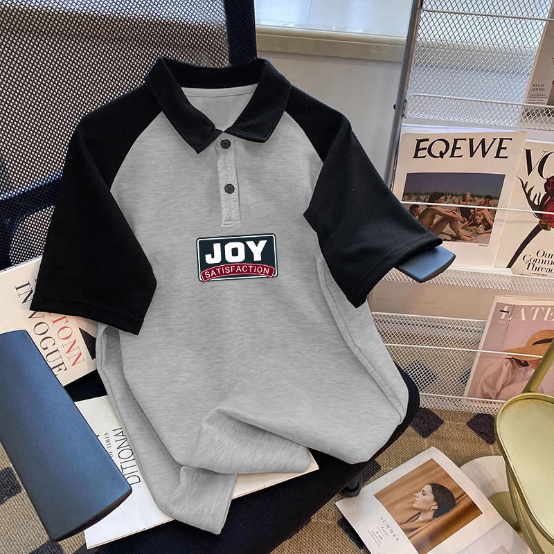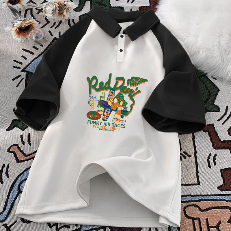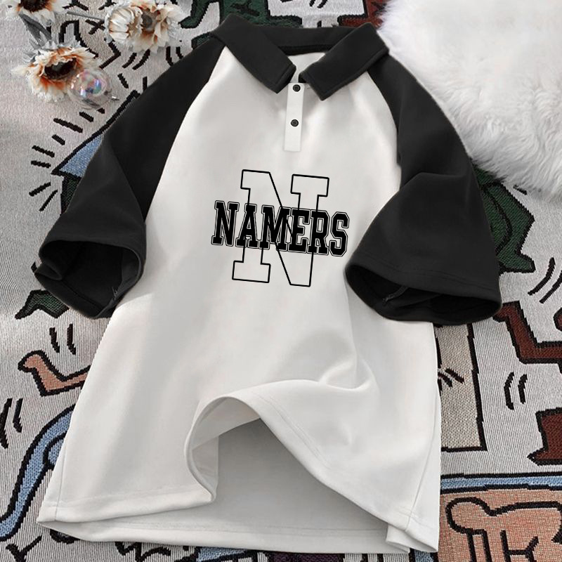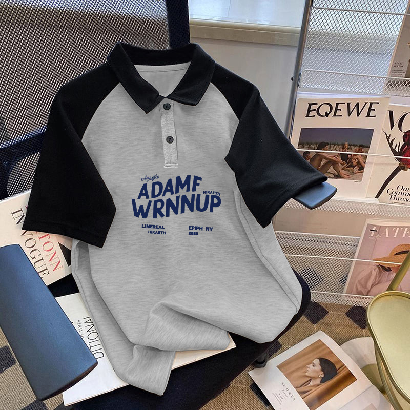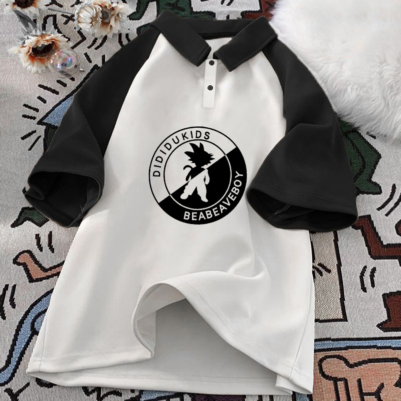 남학생 면 바느질 폴로 셔츠 탑 여름 원피스 잘 생긴 느슨한 올매치 대형 어린이 옷깃 반팔 티셔츠 트렌디스토어 가기