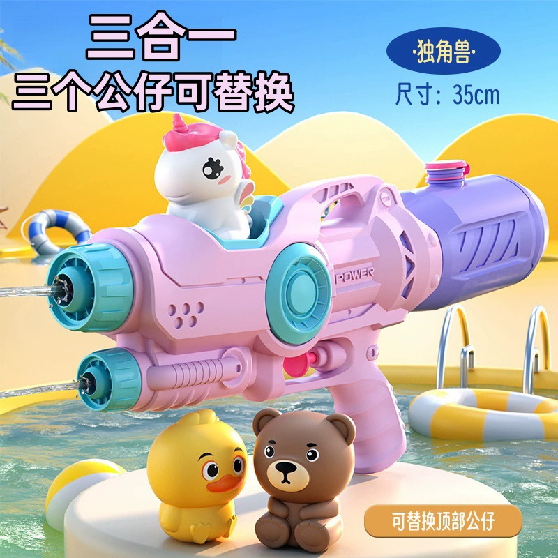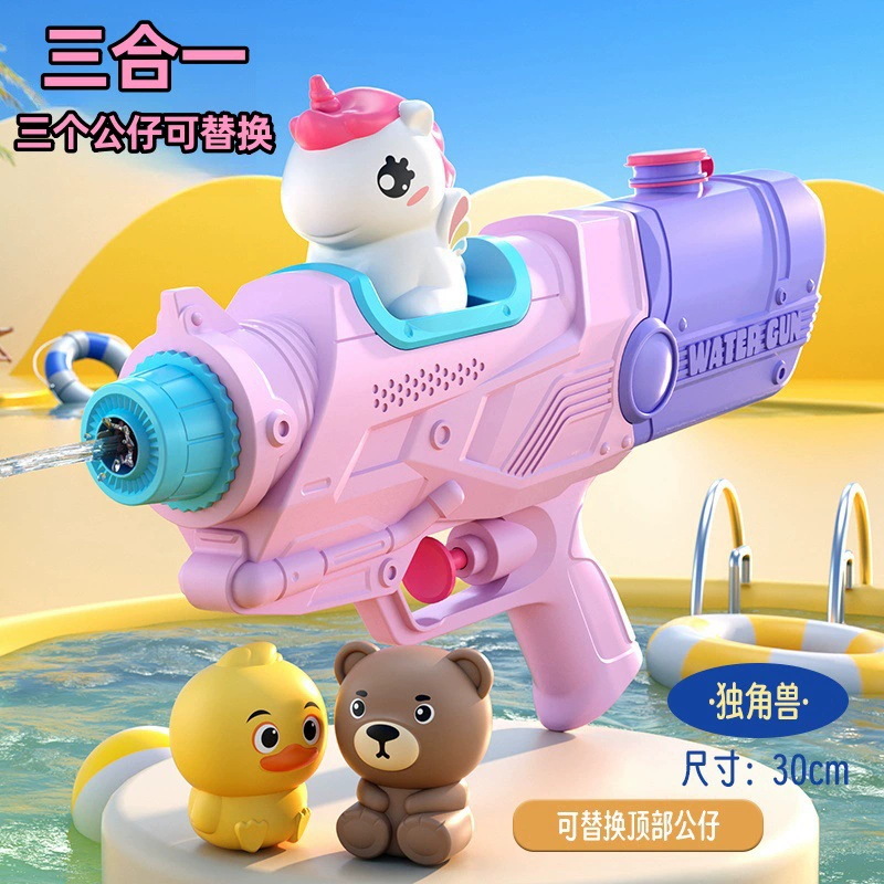• [싱글노즐] 인형 유니콘 물총-핑크(교체가능) 쓰리인원