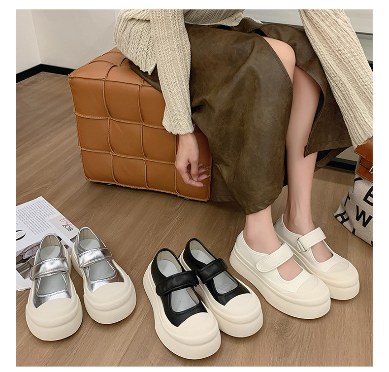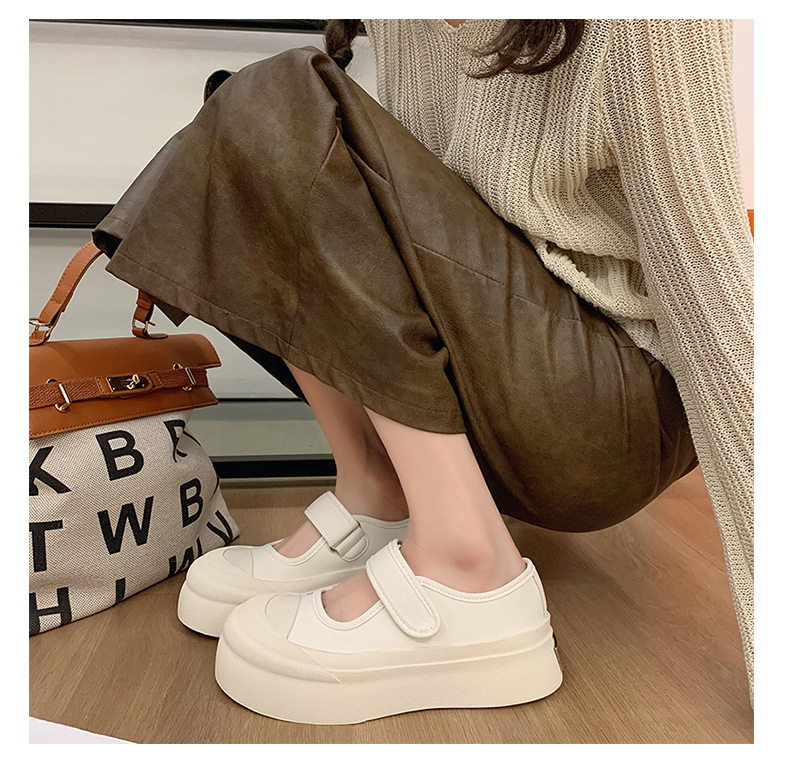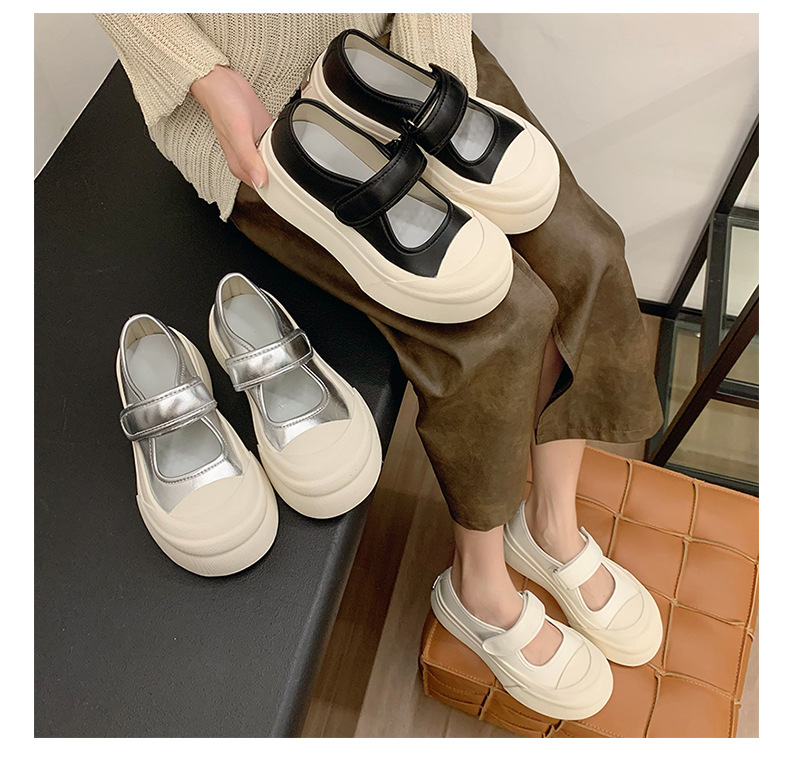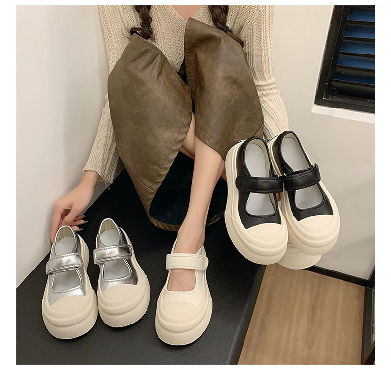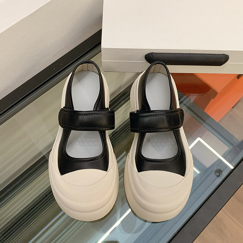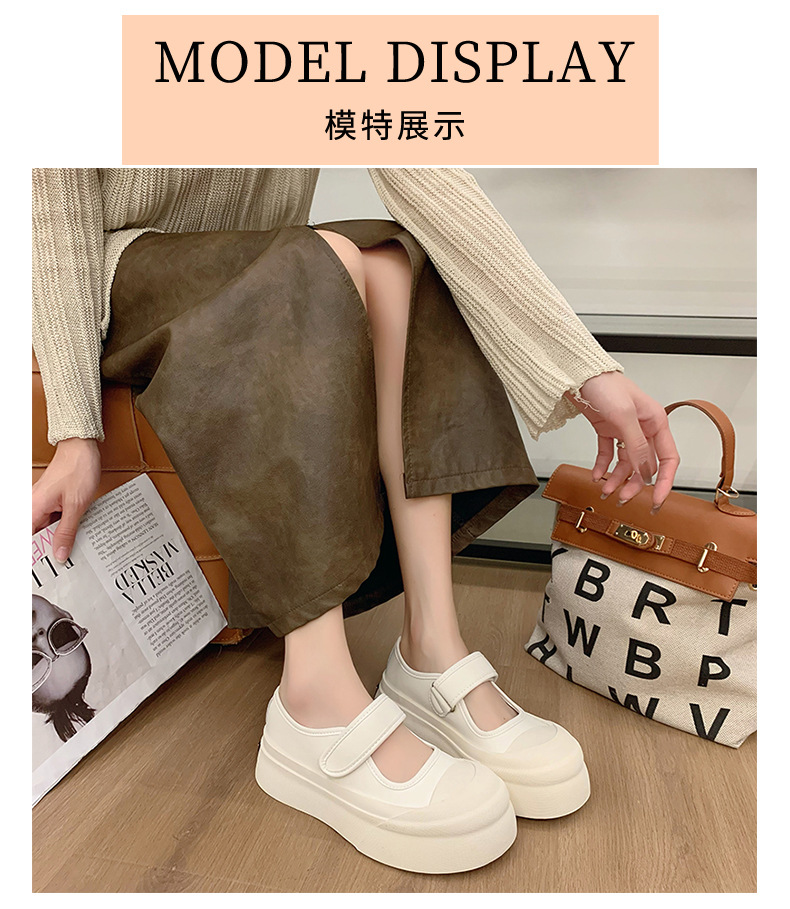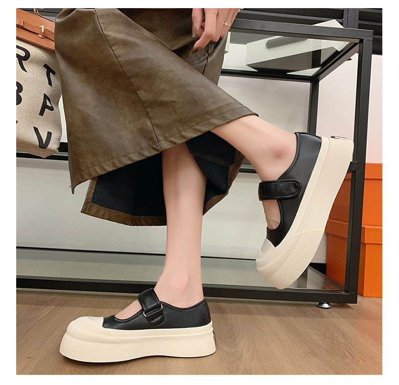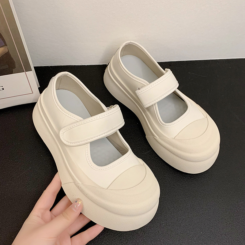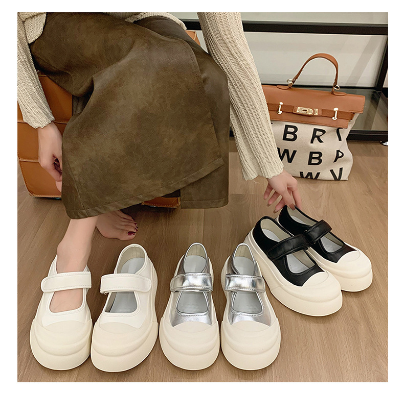 메리 제인 여성 신발 2025 새로운 봄과 여름 벨크로 폭발 흰색 신발 싱글 레이어 신발 두꺼운 솔과 함께 올 매치 화이트 신발스토어 가기