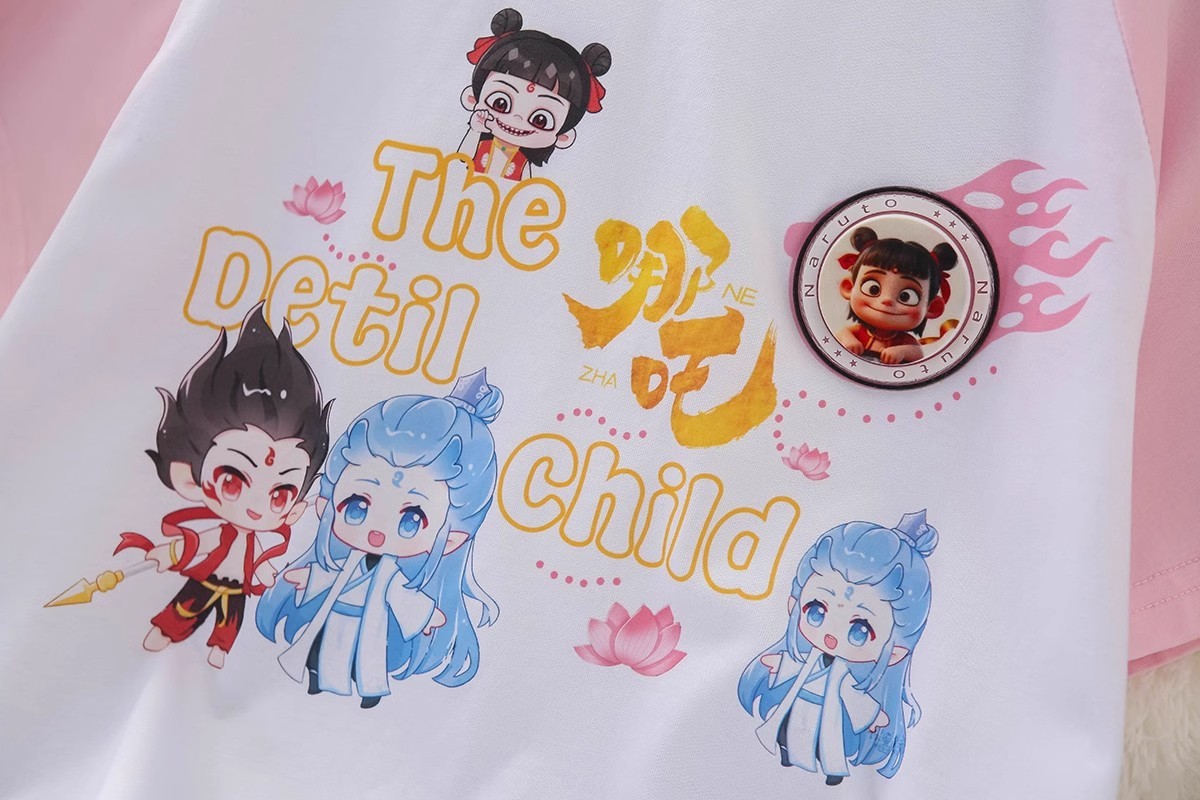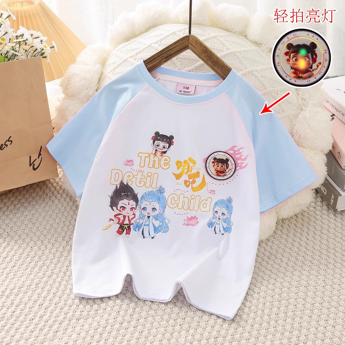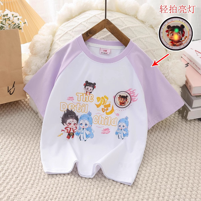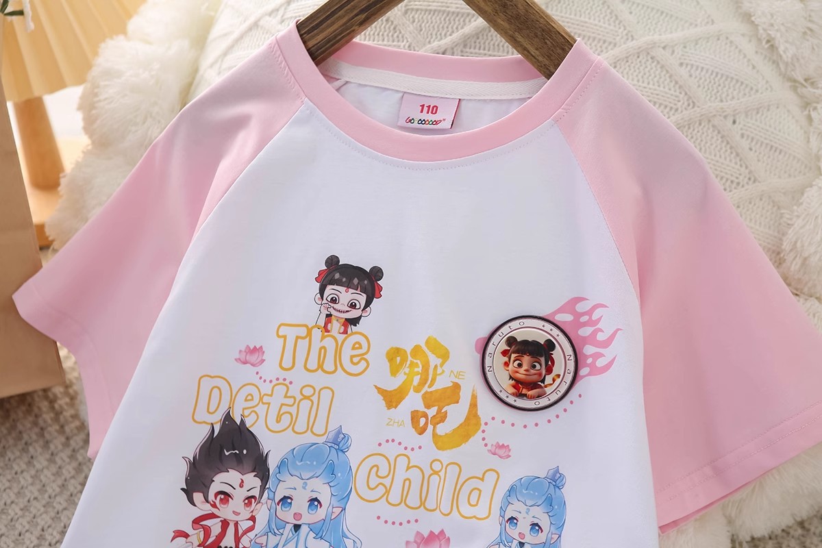 소녀들의 새 여름 울퉁불퉁 한 어깨 Ne 되돌릴 수있는 변화 패턴 시퀀스 반팔 티셔츠 아동복 둥근 목 느슨한 T스토어 가기