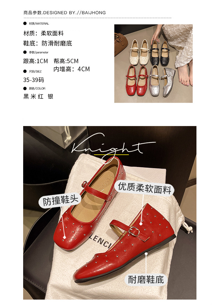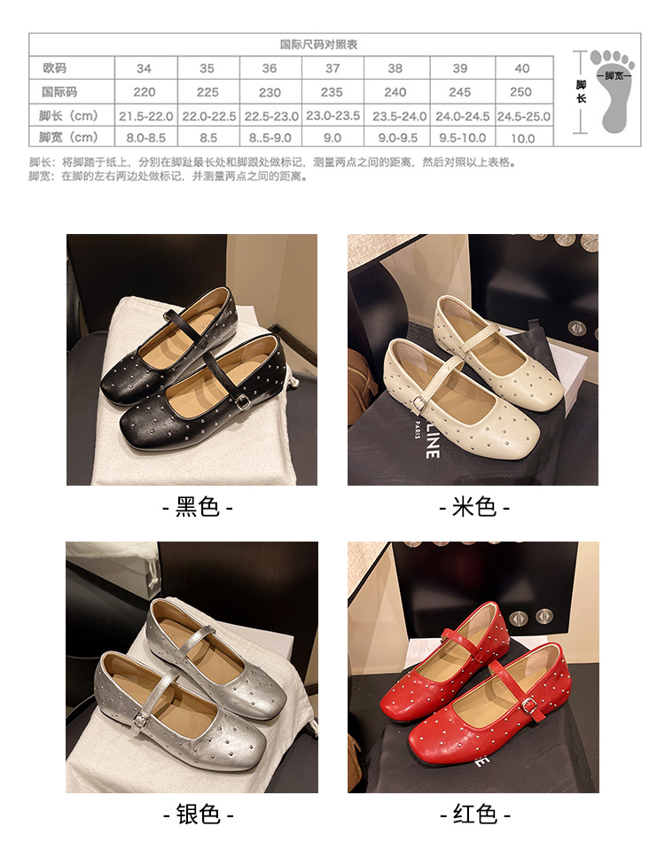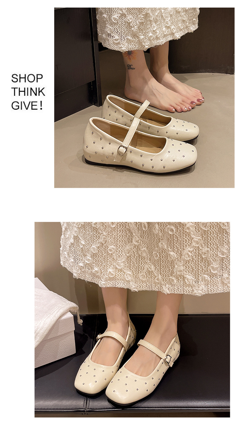 2025 봄 새 한국식 레트로 발레 신발 리벳 스퀘어 발가락 편평한 싱글 레이어 신발 버클 높이 증가 메리 제인 신발스토어 가기