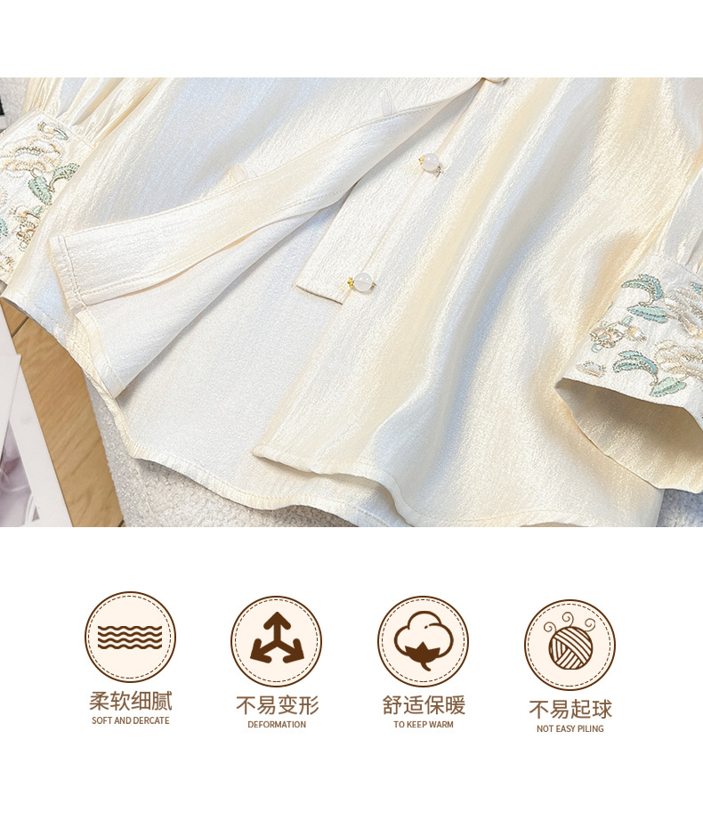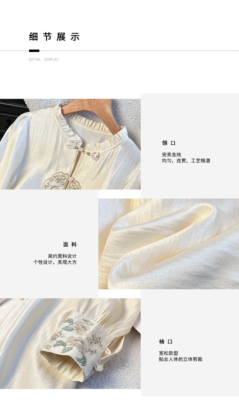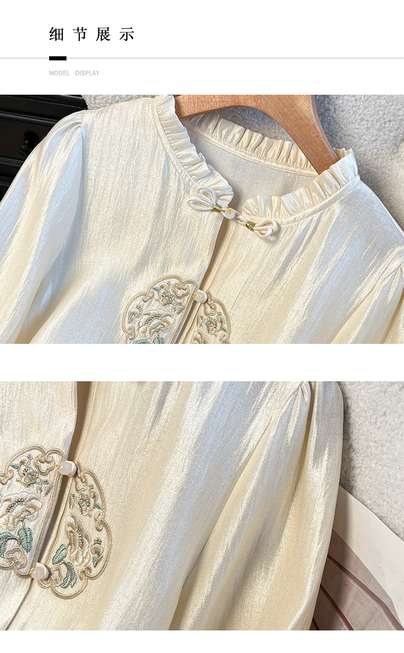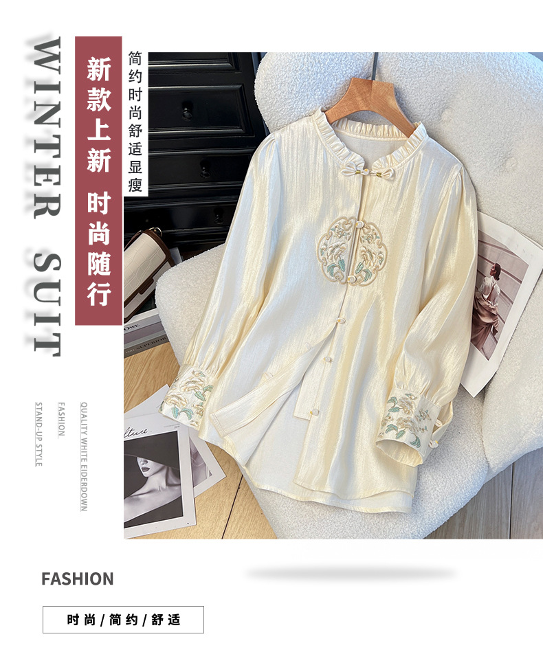 새로운 중국 자수 셔츠 여성의 봄 2025 새로운 빈티지 국가 스타일 디자인 유명 인사를위한 긴 소매 탑