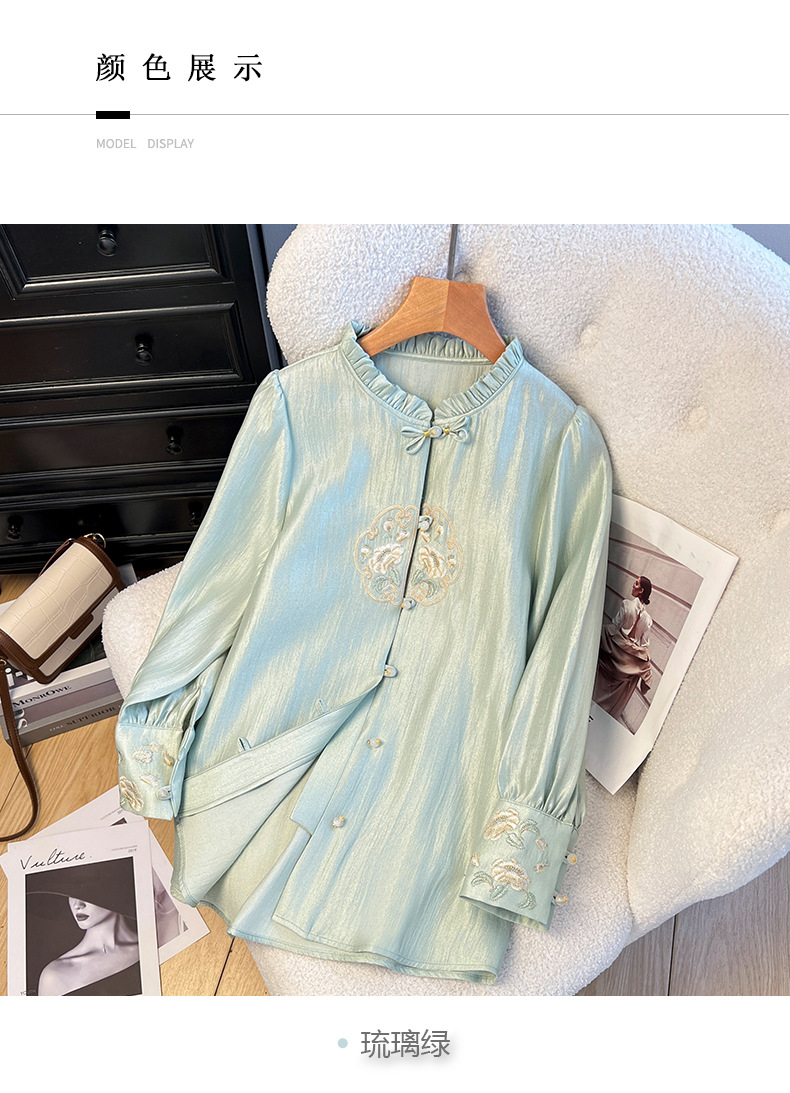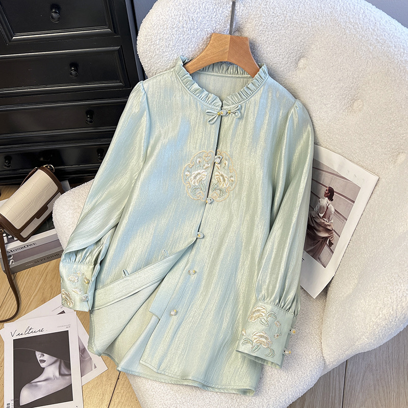 새로운 중국 자수 셔츠 여성의 봄 2025 새로운 빈티지 국가 스타일 디자인 유명 인사를위한 긴 소매 탑스토어 가기