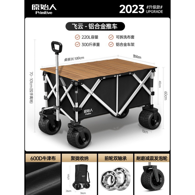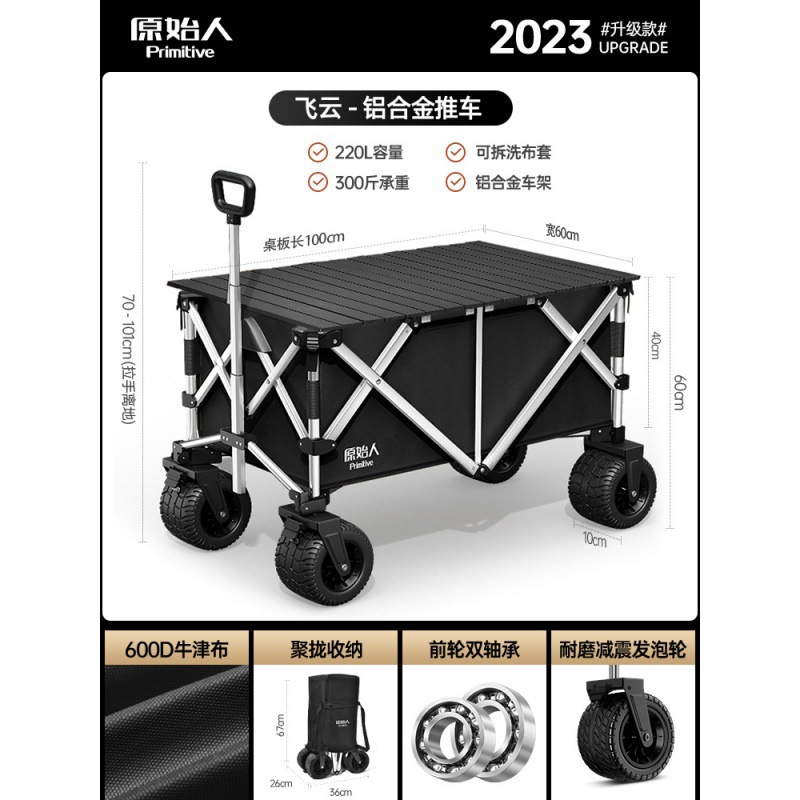 원시 남자 캠핑 카트 캠프 카트 알루미늄 합금 수집 야외 접는 캠핑 피크닉 트레일러 핸드 카트