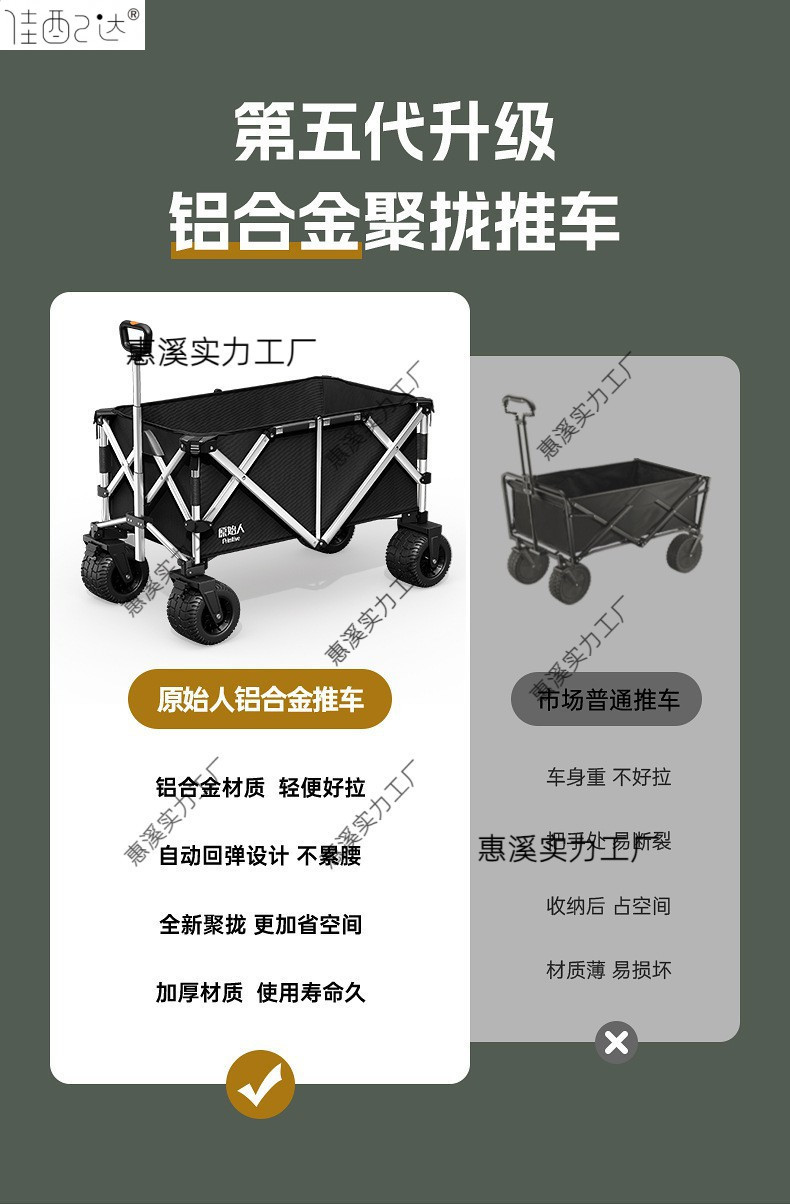 원시 남자 캠핑 카트 캠프 카트 알루미늄 합금 수집 야외 접는 캠핑 피크닉 트레일러 핸드 카트스토어 가기