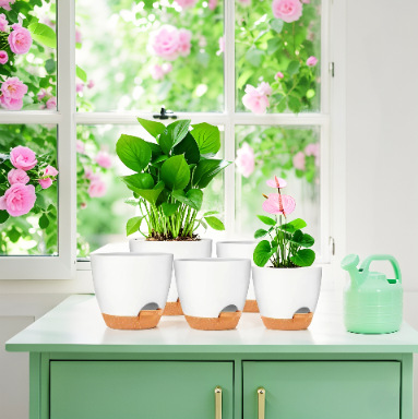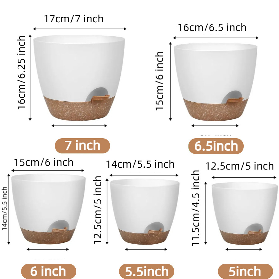 공장 직접 판매 색상 일치 게으른 자체 흡수 혼합 인치 5피스 세트 플라스틱 화분 낙하 방지 및 내후성 화분 홀더 포함스토어 가기