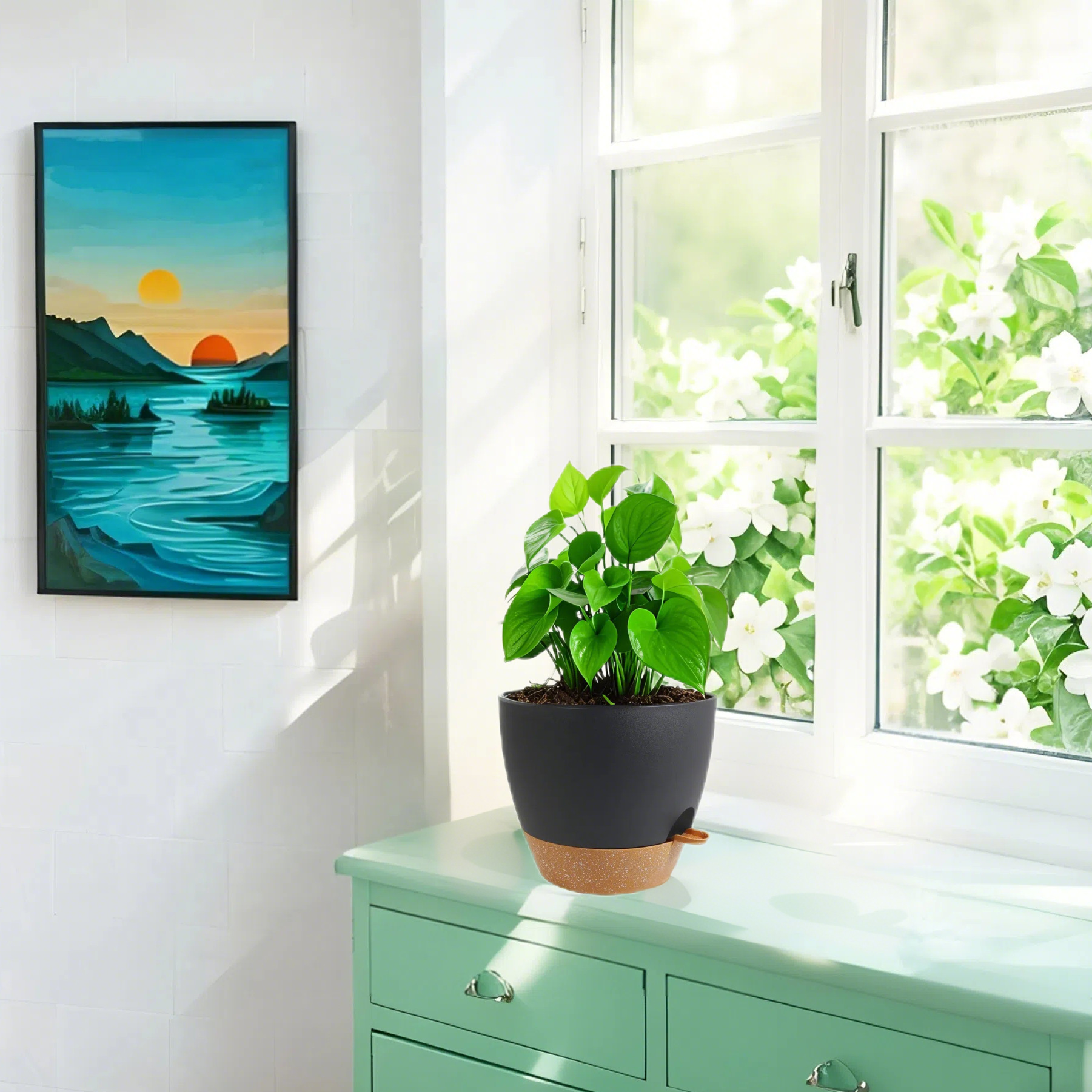 공장 직접 판매 색상 일치 게으른 자체 흡수 혼합 인치 5피스 세트 플라스틱 화분 낙하 방지 및 내후성 화분 홀더 포함