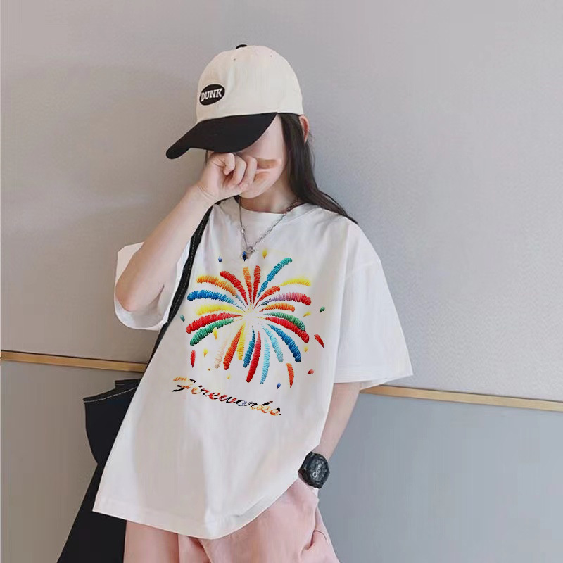 새로운 티셔츠 빅 키즈 캠핑 스타일 반팔 어린이 반팔 코튼 소년과 소녀 여름 싱글 피스 빅 키즈